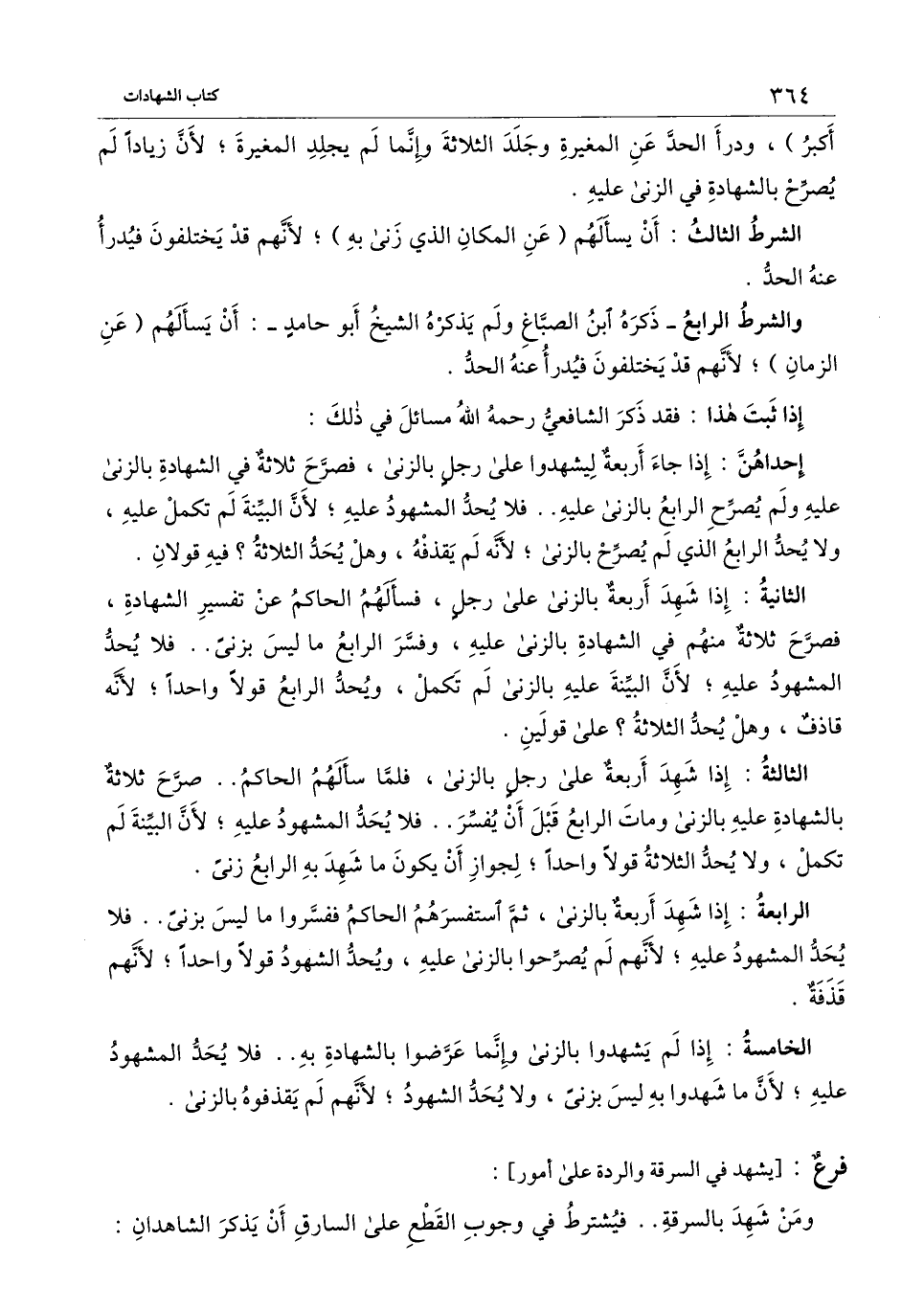 والشرط الرابع - ذكره ابن الصباغ ولم يذكره الشيخ أبو حامد -: أن يسألهم (عن الزمان) ؛ لأنهم قد يختلفون فيدرأ عنه الحد.