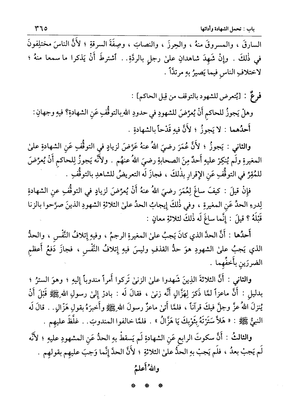 ] : وهل يجوز للحاكم أن يعرض للشهود في حدود الله بالتوقف عن الشهادة؟ فيه وجهان: