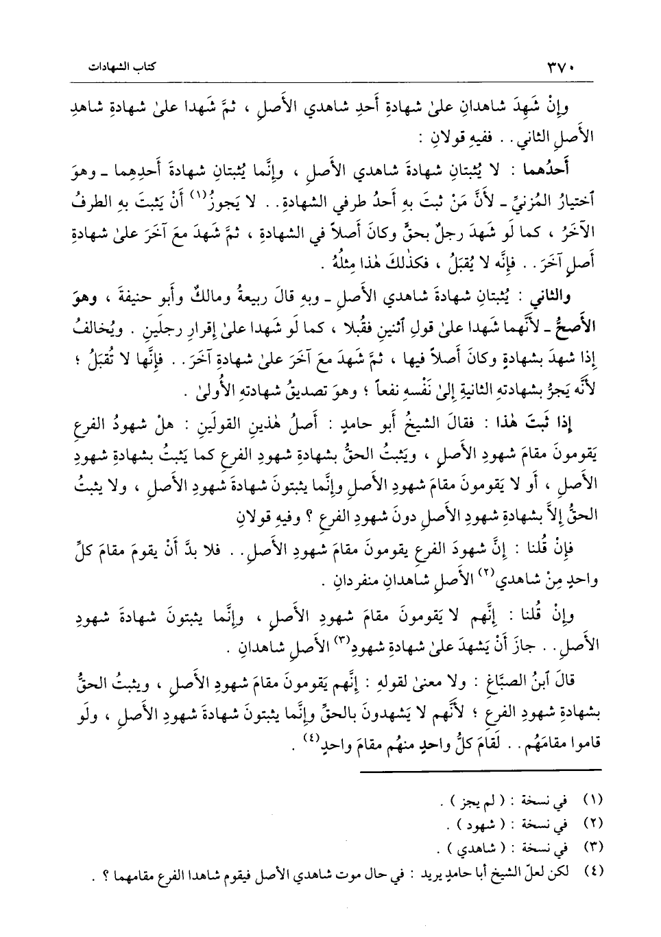 أحدهما: لا يثبتان شهادة شاهدي الأصل، وإنما يثبتان شهادة أحدهما - وهو اختيار المزني - لأن من ثبت به أحد طرفي الشهادة.. لا يجوز أن يثبت به الطرف الآخر، كما لو شهد رجل بحق وكان أصلا في الشهادة، ثم شهد مع آخر على شهادة أصل آخر.. فإنه لا يقبل، فكذلك هذا مثله.