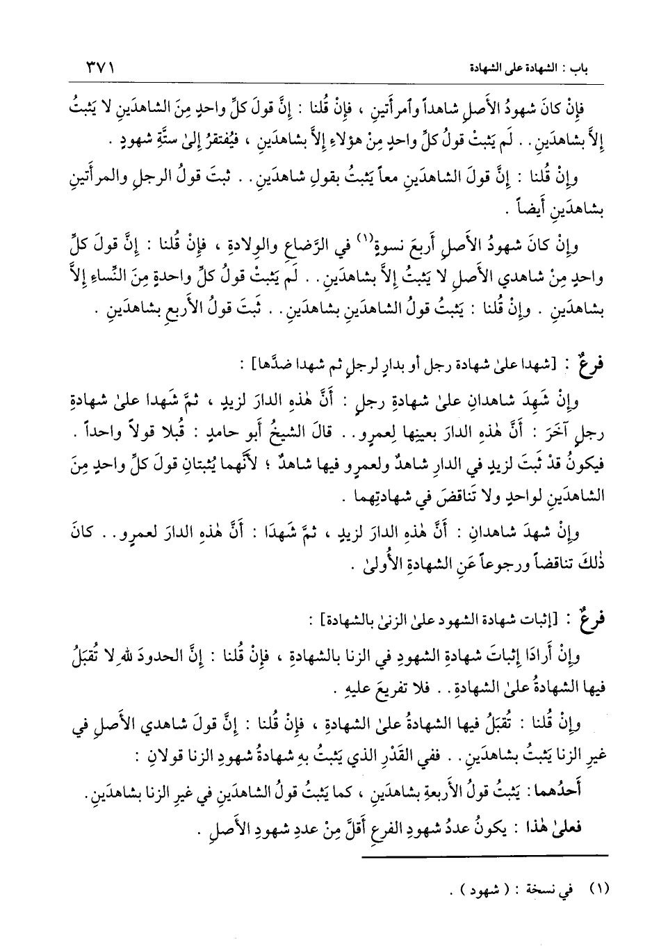 فعلى هذا: يكون عدد شهود الفرع أقل من عدد شهود الأصل.