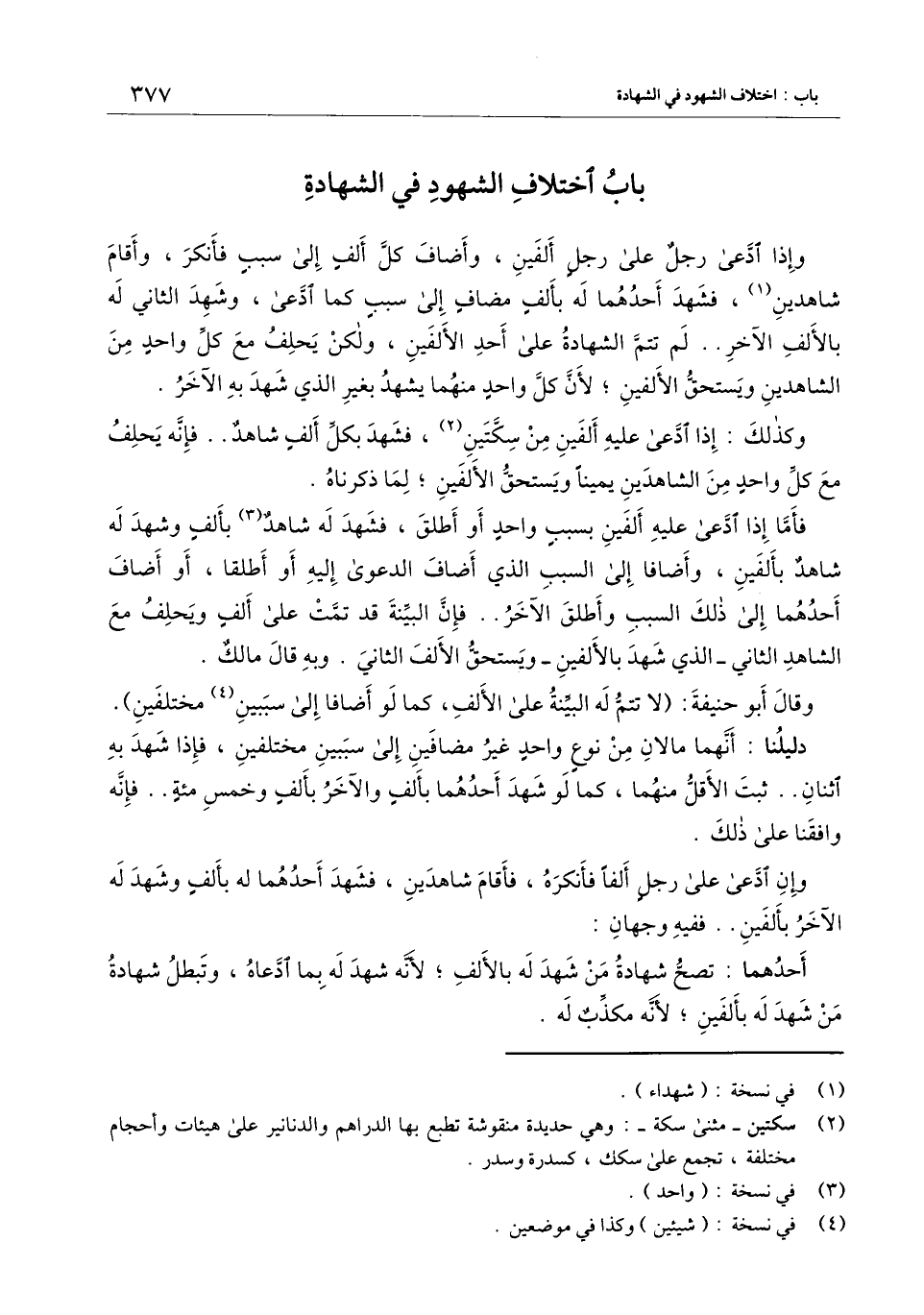 باب اختلاف الشهود في الشهادة وإذا ادعى رجل على رجل ألفين، وأضاف كل ألف إلى سبب فأنكر، وأقام شاهدين، فشهد أحدهما له بألف مضاف إلى سبب كما ادعى، وشهد الثاني له بالألف الآخر.. لم تتم الشهادة على أحد الألفين، ولكن يحلف مع كل واحد من الشاهدين ويستحق الألفين؛ لأن كل واحد منهما يشهد بغير الذي شهد به الآخر.