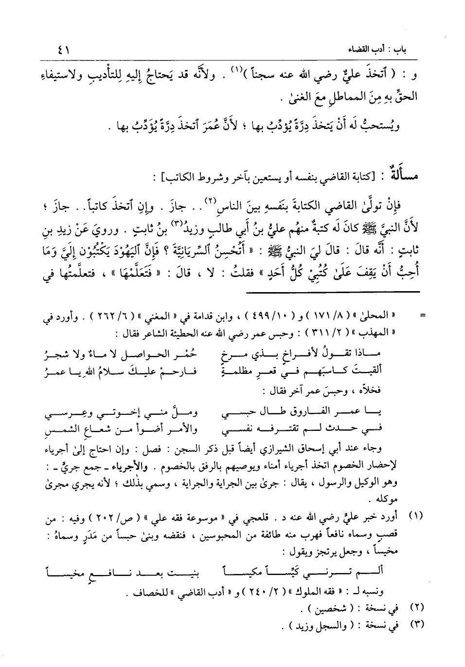 ] : فإن تولى القاضي الكتابة بنفسه بين الناس.. جاز. وإن اتخذ كاتبا.. جاز؛ لأن النبي - صَلَّى اللَّهُ عَلَيْهِ وَسَلَّمَ - كان له كتبة منهم علي بن أبي طالب وزيد بن ثابت. وروي «عن زيد بن ثابت: أنه قال: قال لي النبي: " أتحسن السريانية؟ فإن اليهود يكتبون إلي وما أحب أن يقف على كتبي كل أحد " فقلت: لا، قال: " فتعلمها "، فتعلمتها في