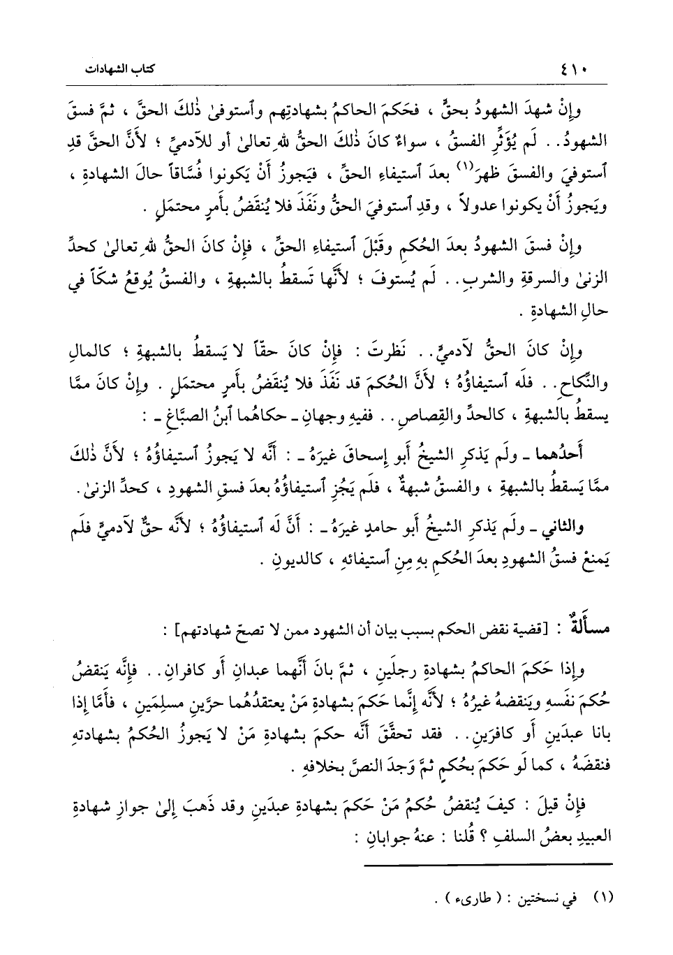 [مسألة قضية نقض الحكم بسبب بيان أن الشهود ممن لا تصح شهادتهم]