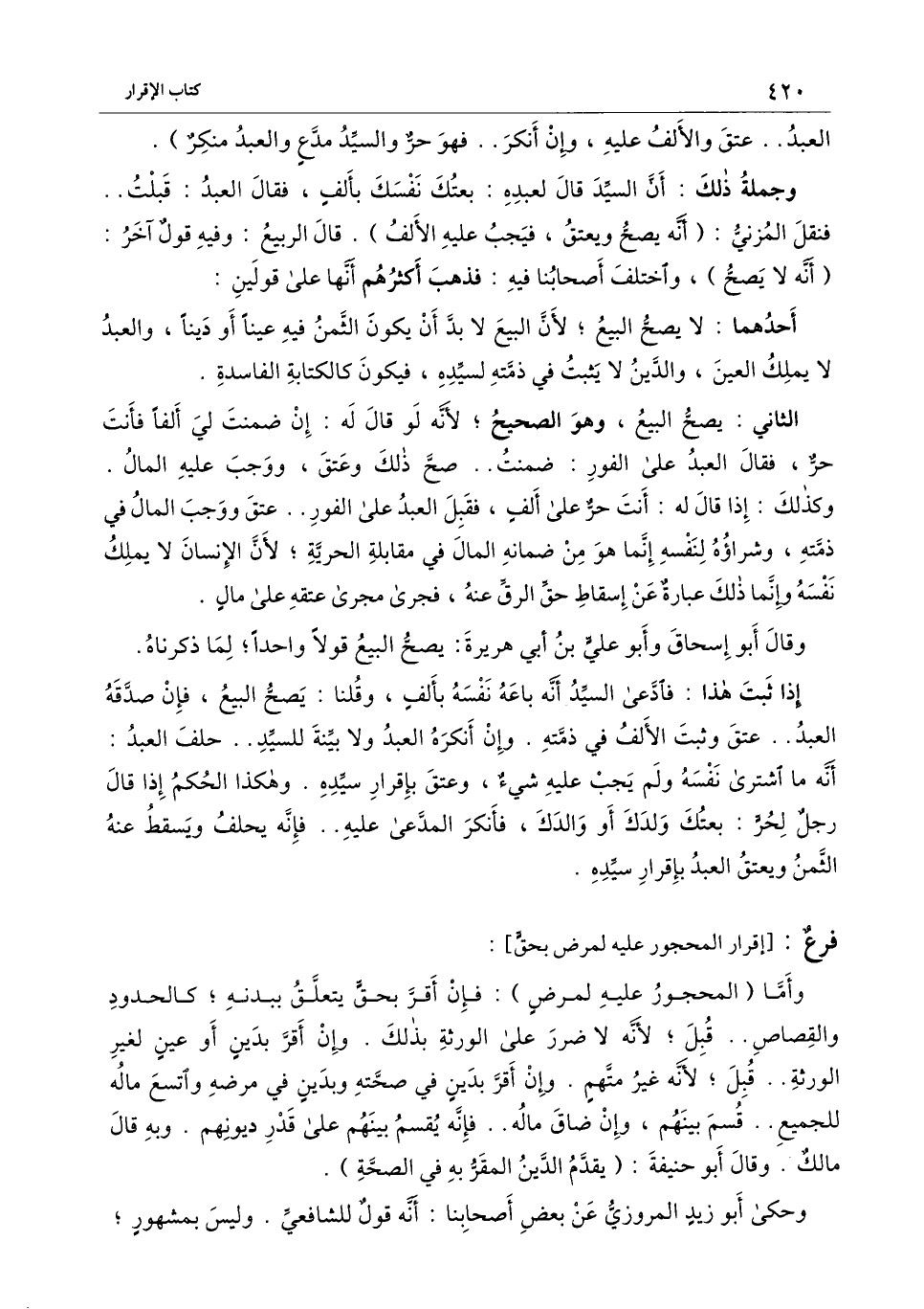 العبد.. عتق والألف عليه، وإن أنكر. فهو حر والسيد مدع والعبد منكر)