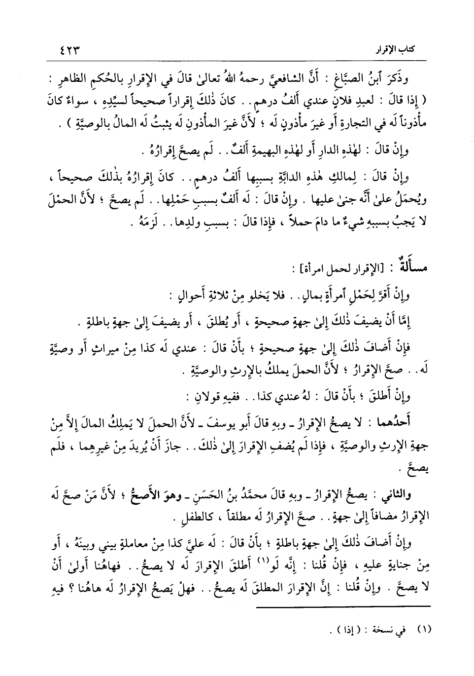 [مسألة الإقرار لحمل امرأة]