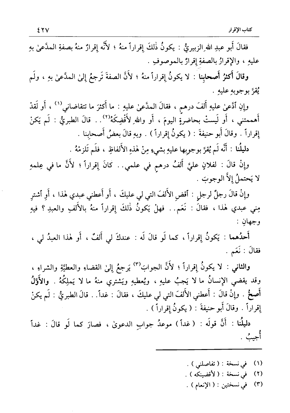 فقال أبو عبد الله الزبيري: يكون ذلك إقرارا منه؛ لأنه إقرار منه بصفة المدعى به عليه، والإقرار بالصفة إقرار بالموصوف.