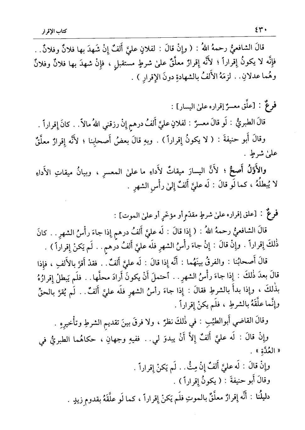 [فرع علق إقراره على شرط مقدم أو مؤخر أو على الموت]