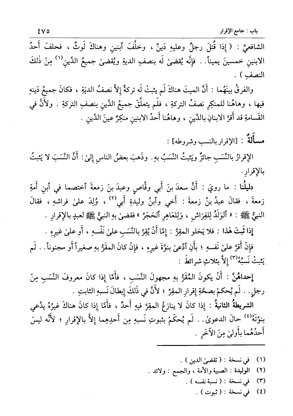 [مسألة الإقرار بالنسب وشروطه]