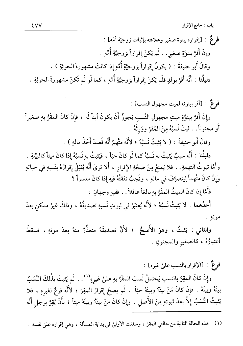[فرع إقراره ببنوة صغير وعلاقته بإثبات زوجية أمه]