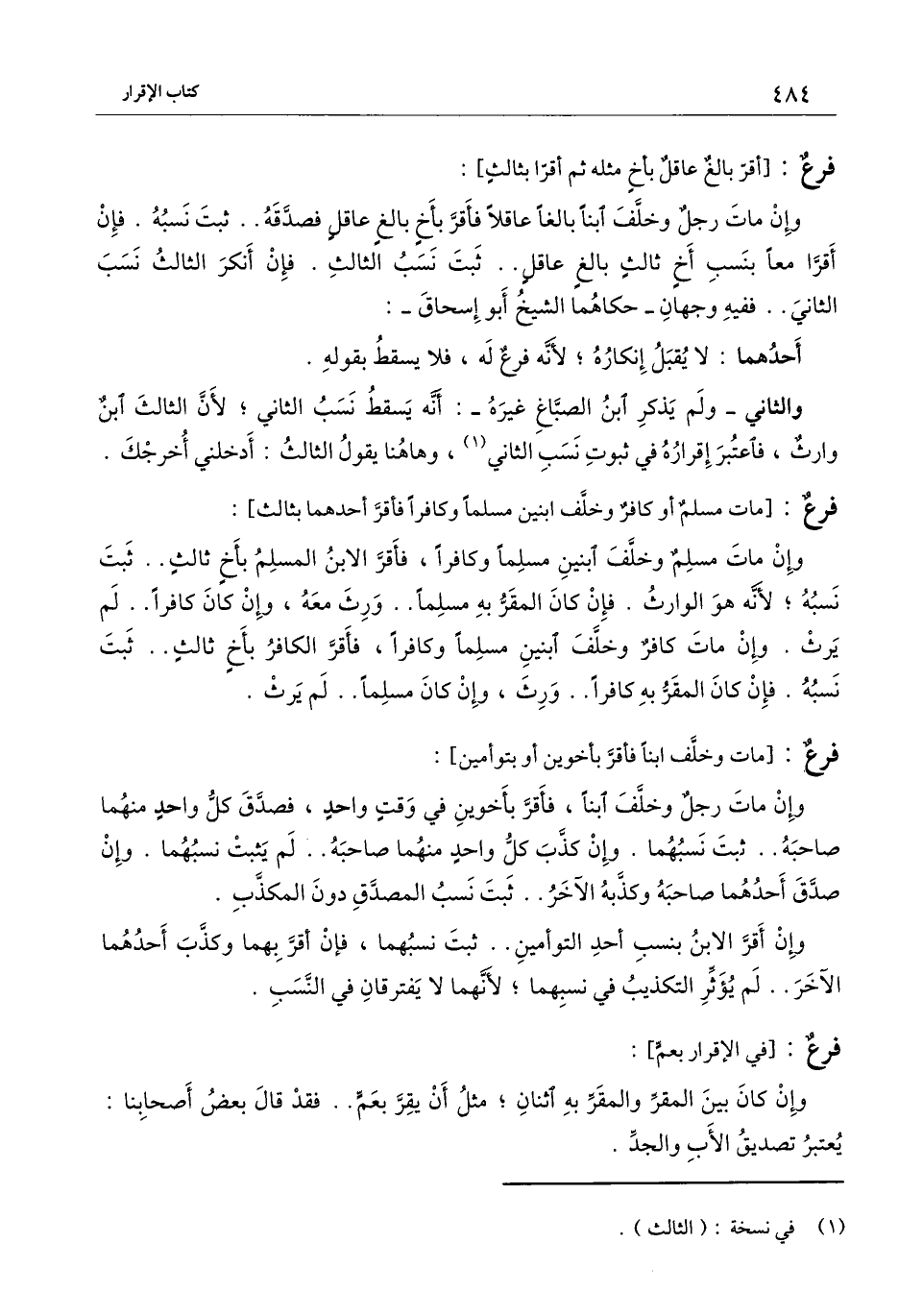 [فرع الإقرار بعم]
