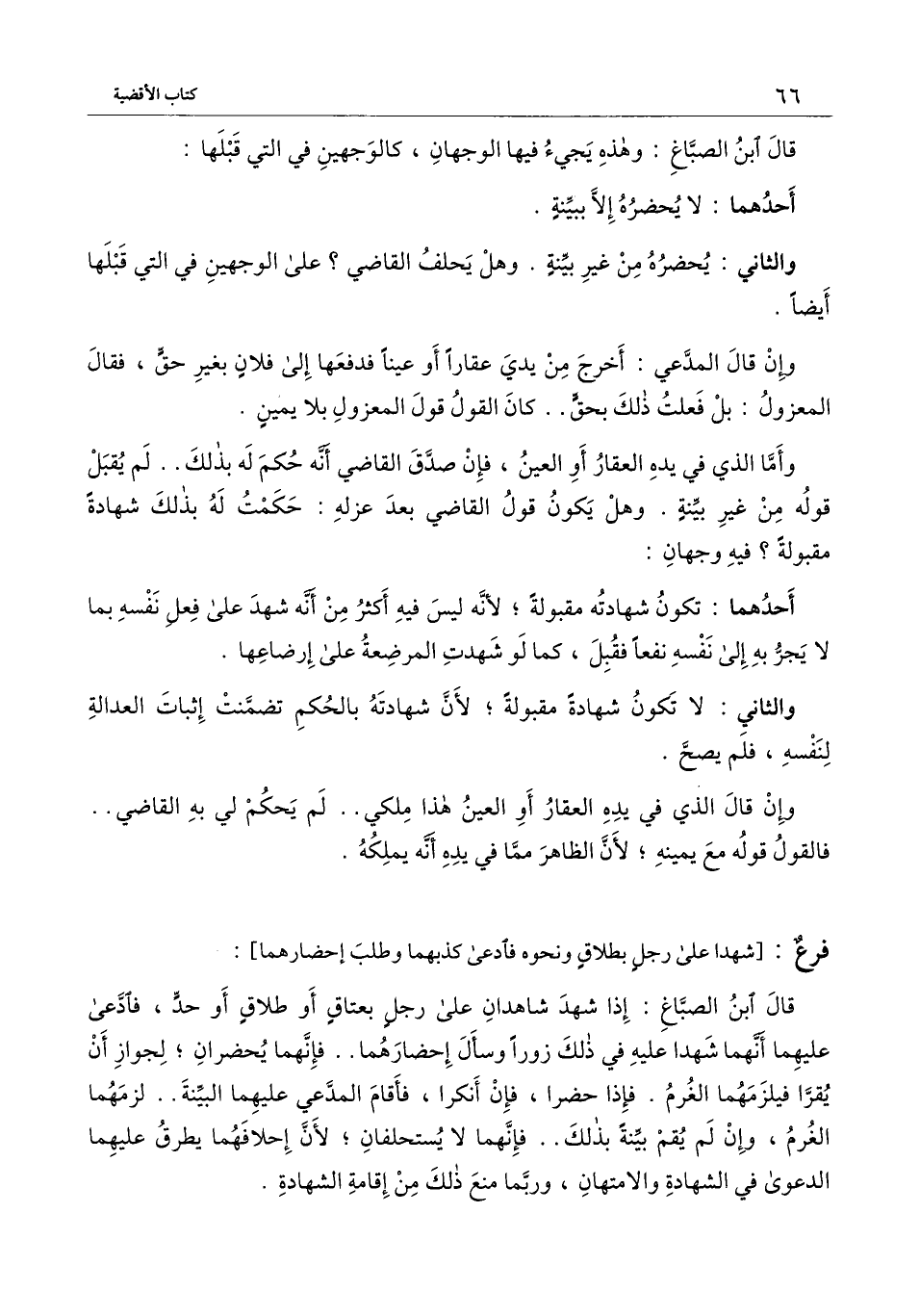 وأما الذي في يده العقار أو العين، فإن صدق القاضي بأنه حكم له بذلك.. لم يقبل قوله من غير بينة. وهل يكون قول القاضي بعد عزله: حكمت له بذلك شهادة مقبولة؟ فيه وجهان: