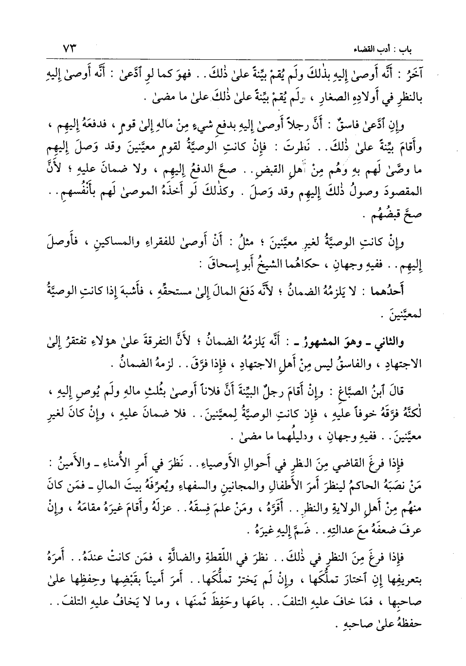آخر: أنه أوصى إليه بذلك ولم يقم بينة على ذلك.. فهو كما لو ادعى: أنه أوصى إليه بالنظر في أولاده الصغار، ولم يقم بينة على ذلك على ما مضى.