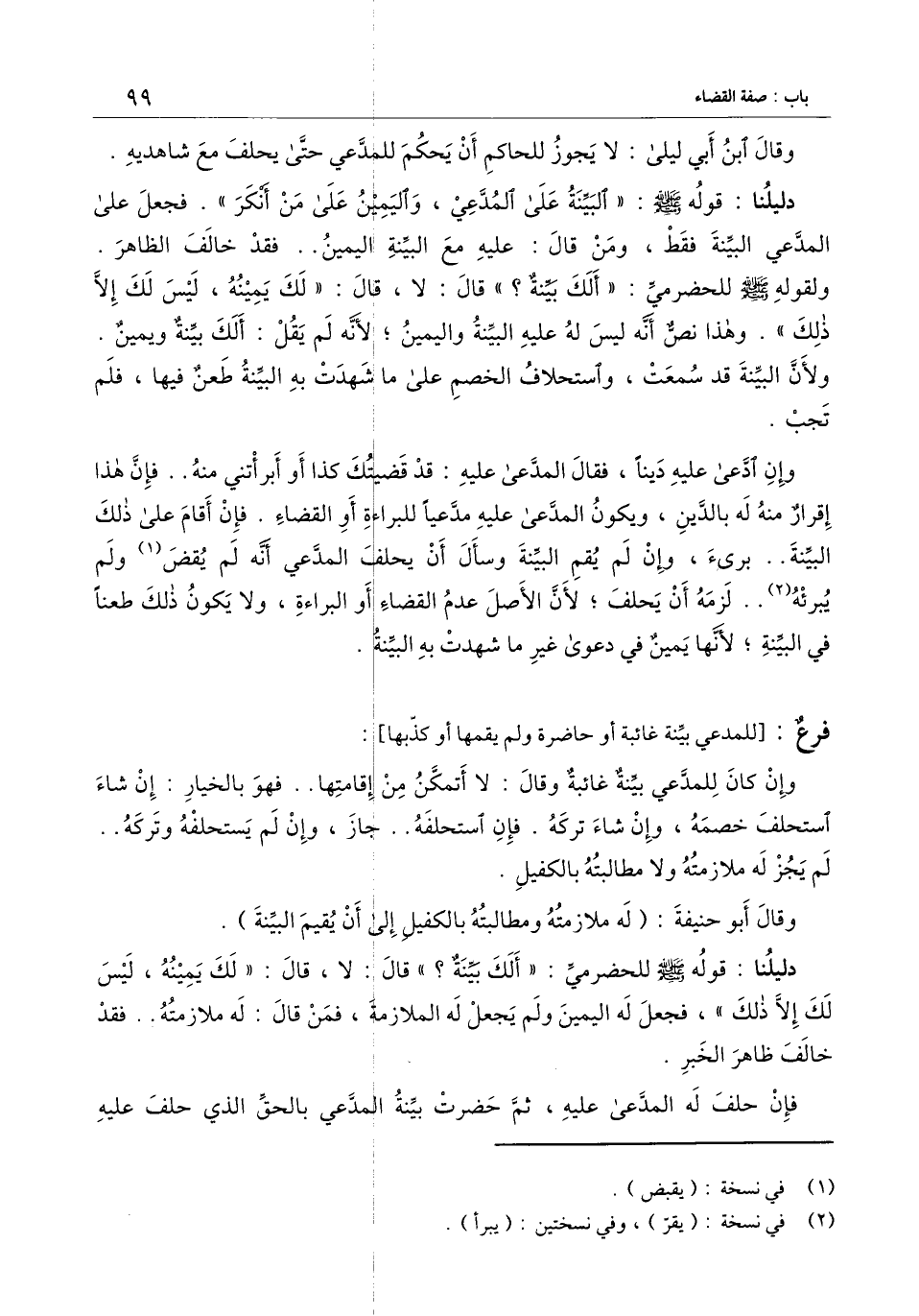 [فرع للمدعي بينة غائبة أو حاضرة ولم يقمها أو كذبها]