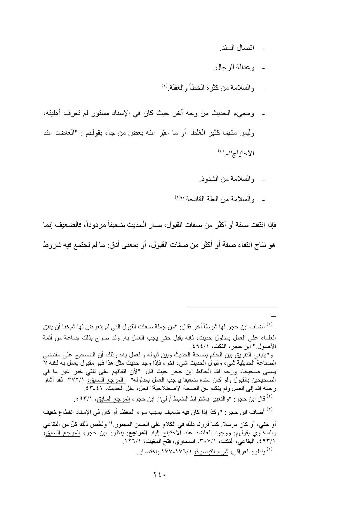 (¬1) قال ابن حجر: "والتعبير باشتراط الضبط أولى". ابن حجر، المرجع السابق، 1/ 493.