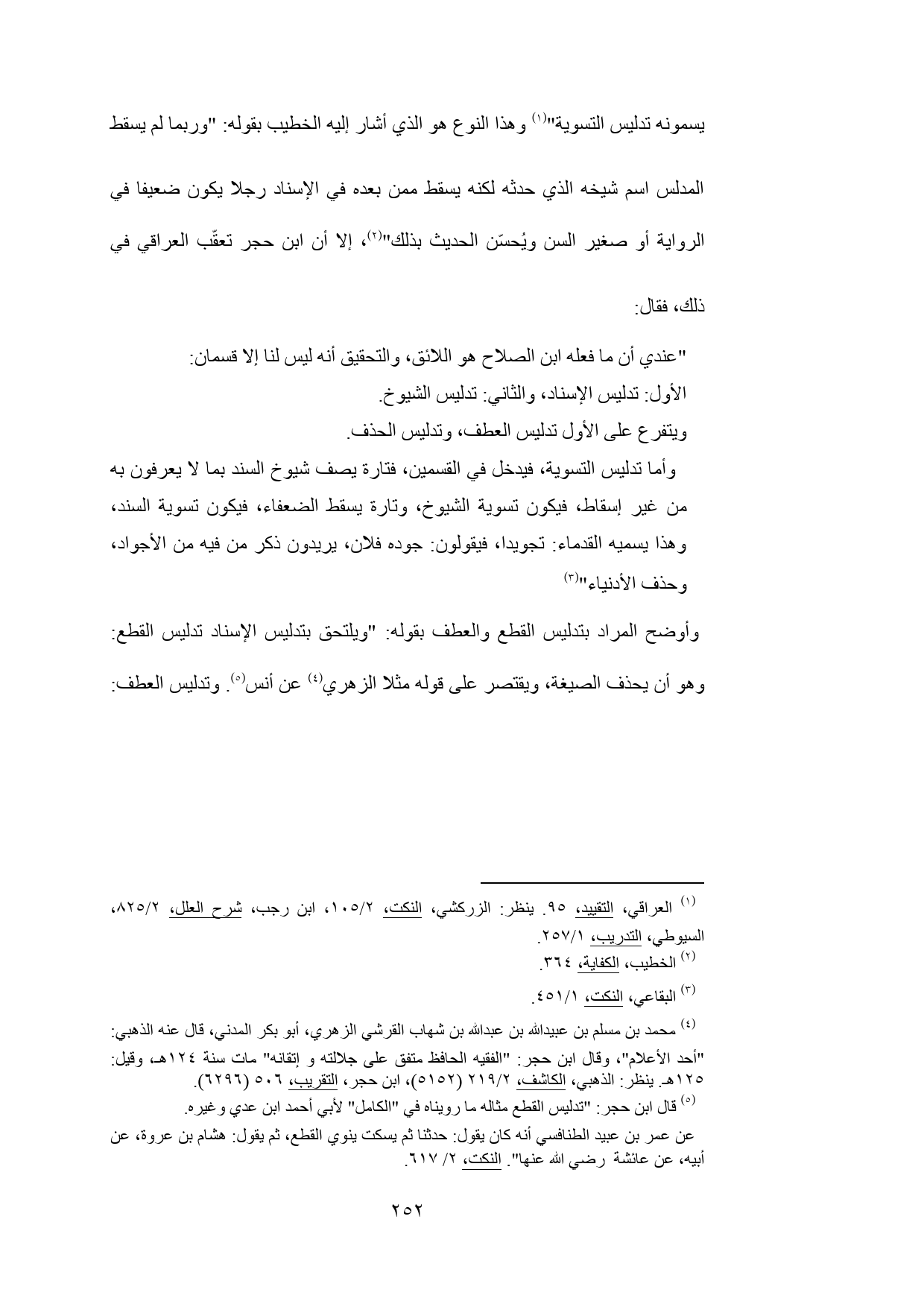 (¬1) العراقي، التقييد، 95. ينظر: الزركشي، النكت، 2/ 105، ابن رجب، شرح العلل، 2/ 825، السيوطي، التدريب، 1/ 257.