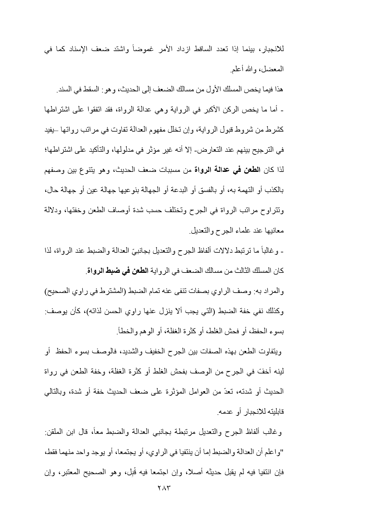 - وغالباً ما ترتبط دلالات ألفاظ الجرح والتعديل بجانبيّ العدالة والضبط عند الرواة، لذا كان المسلك الثالث من مسالك الضعف في الرواية الطعن في ضبط الرواة.