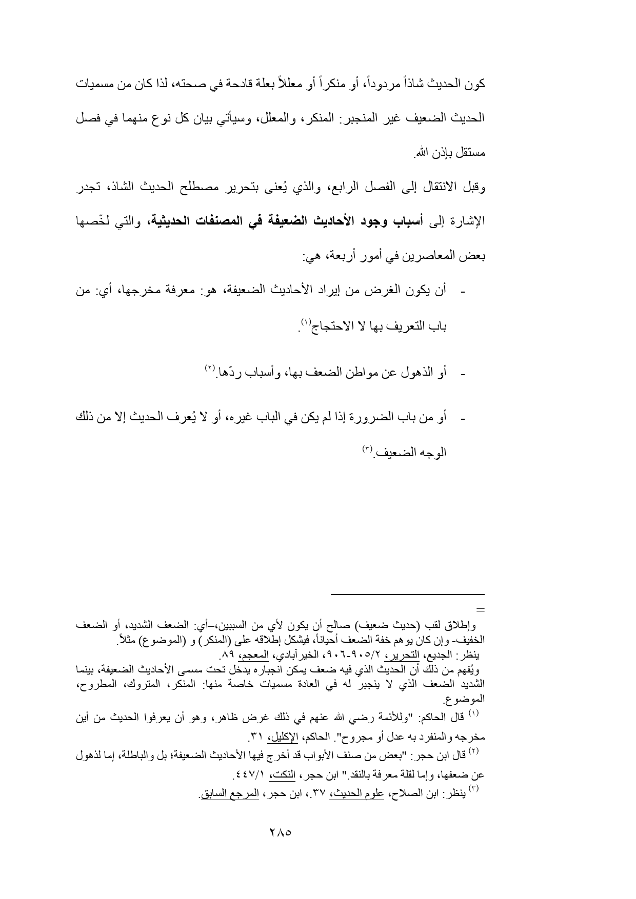 (¬3) ينظر: ابن الصلاح، علوم الحديث، 37.، ابن حجر، المرجع السابق.