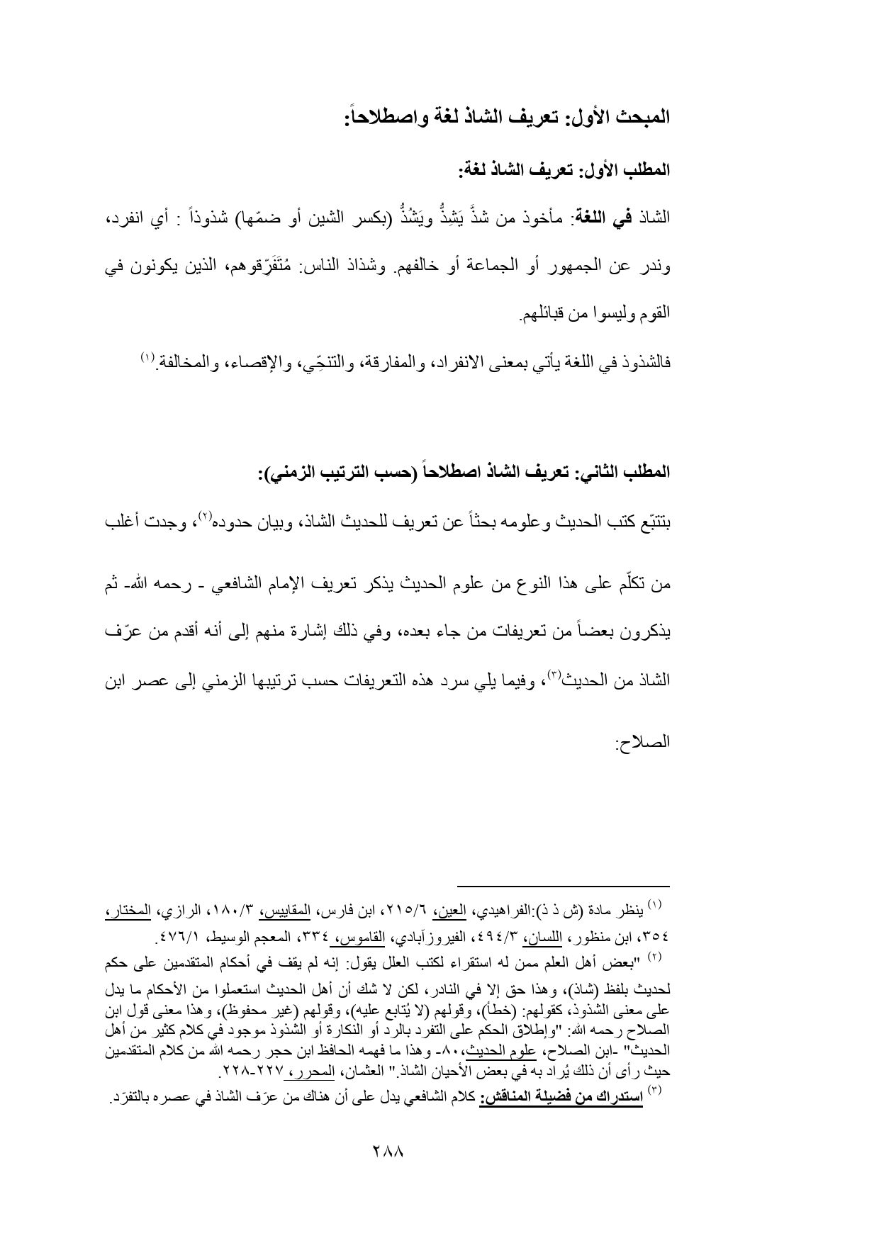 المطلب الثاني: تعريف الشاذ اصطلاحاً (حسب الترتيب الزمني):