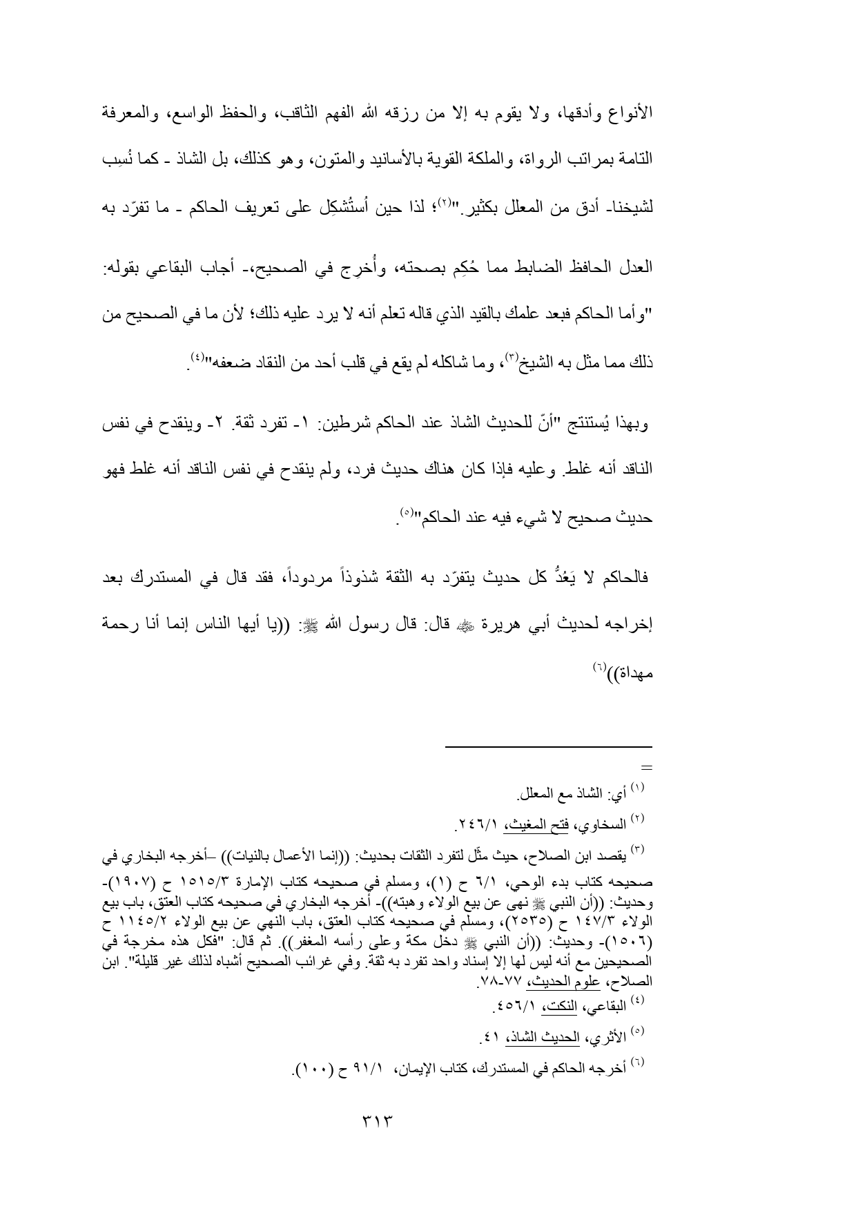 وبهذا يُستنتج "أنّ للحديث الشاذ عند الحاكم شرطين: