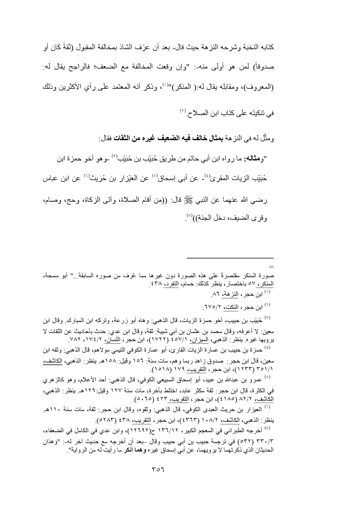 "ومثاله: ما رواه ابن أبي حاتم من طريق حُبَيِّب بن حُبَيِّب (¬3) -وهو أخو حمزة ابن