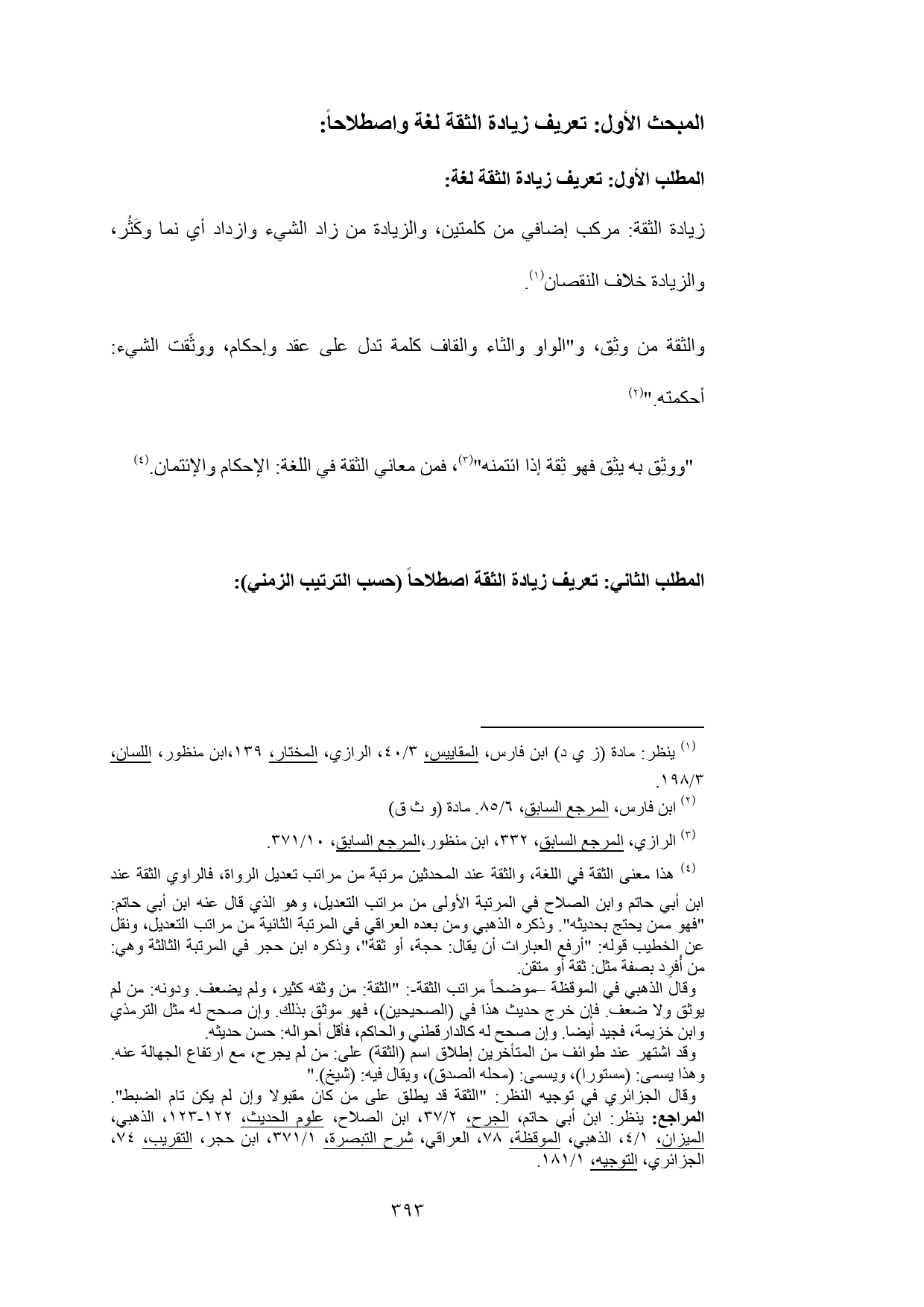 المطلب الثاني: تعريف زيادة الثقة اصطلاحاً (حسب الترتيب الزمني):