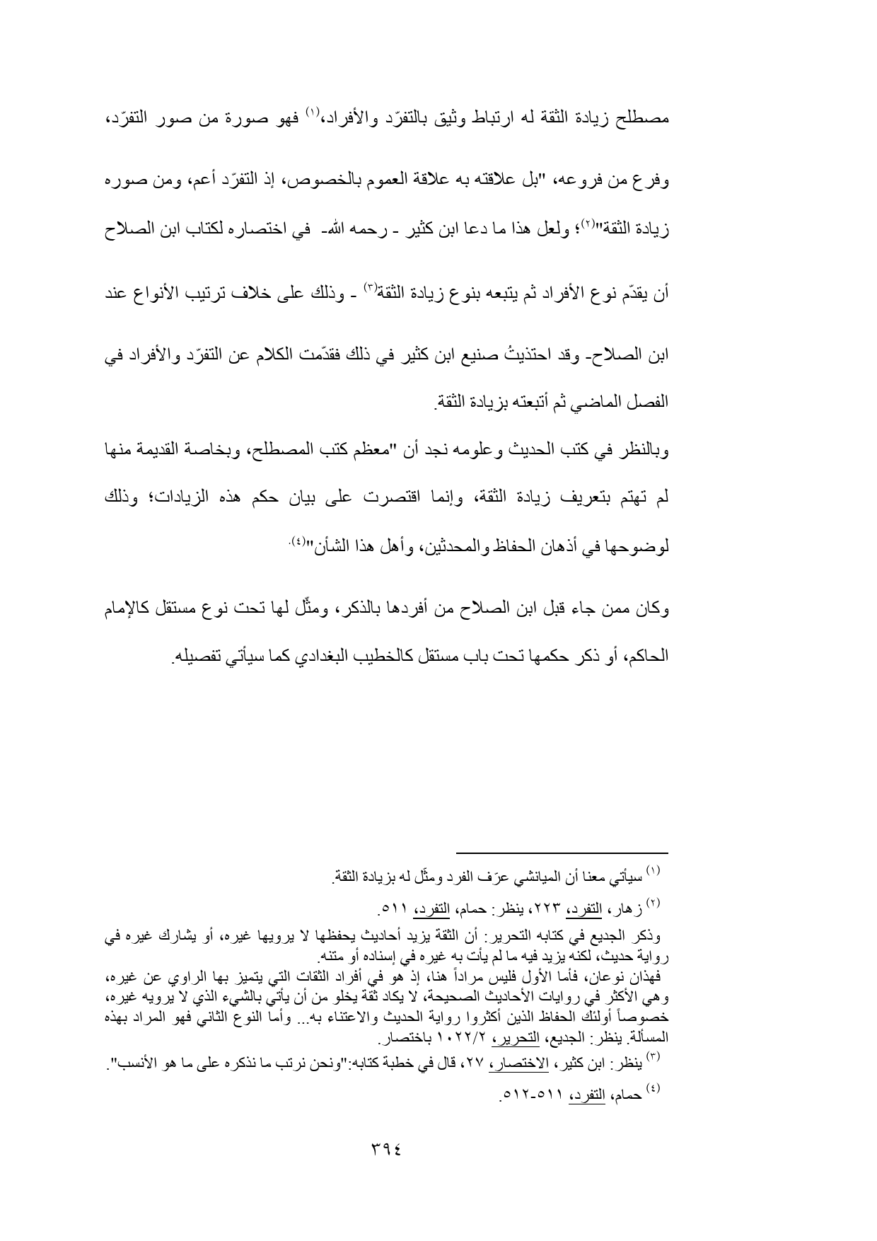 مصطلح زيادة الثقة له ارتباط وثيق بالتفرّد والأفراد، (¬1) فهو صورة من صور التفرّد، وفرع من فروعه، "بل علاقته به علاقة العموم بالخصوص، إذ التفرّد أعم، ومن صوره زيادة الثقة" (¬2)؛ ولعل هذا ما دعا ابن كثير - رحمه الله- في اختصاره لكتاب ابن الصلاح أن يقدّم نوع الأفراد ثم يتبعه بنوع زيادة الثقة (¬3) - وذلك على خلاف ترتيب الأنواع عند ابن الصلاح- وقد احتذيتُ صنيع ابن كثير في ذلك فقدّمت الكلام عن التفرّد والأفراد في الفصل الماضي ثم أتبعته بزيادة الثقة.