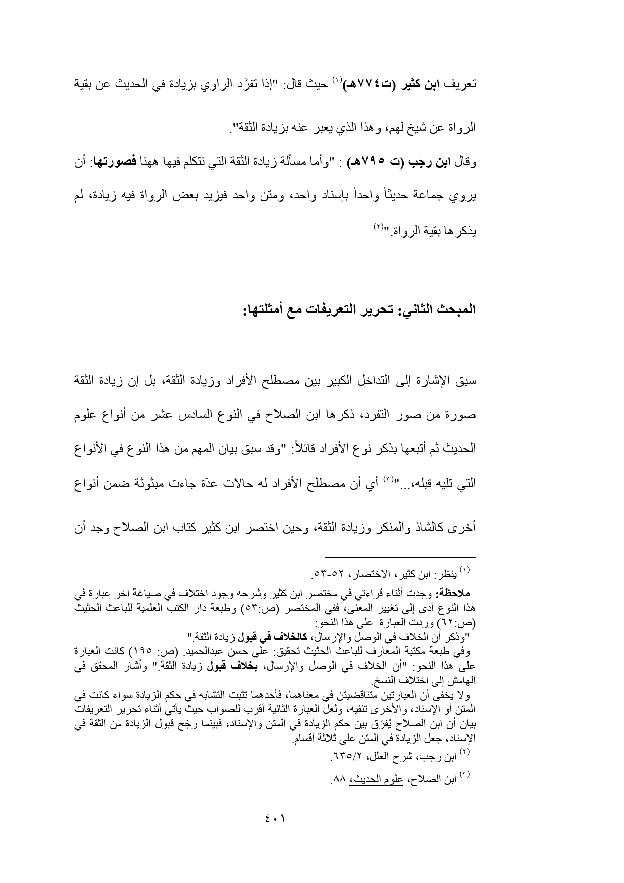 أخرى كالشاذ والمنكر وزيادة الثقة، وحين اختصر ابن كثير كتاب ابن الصلاح وجد أن