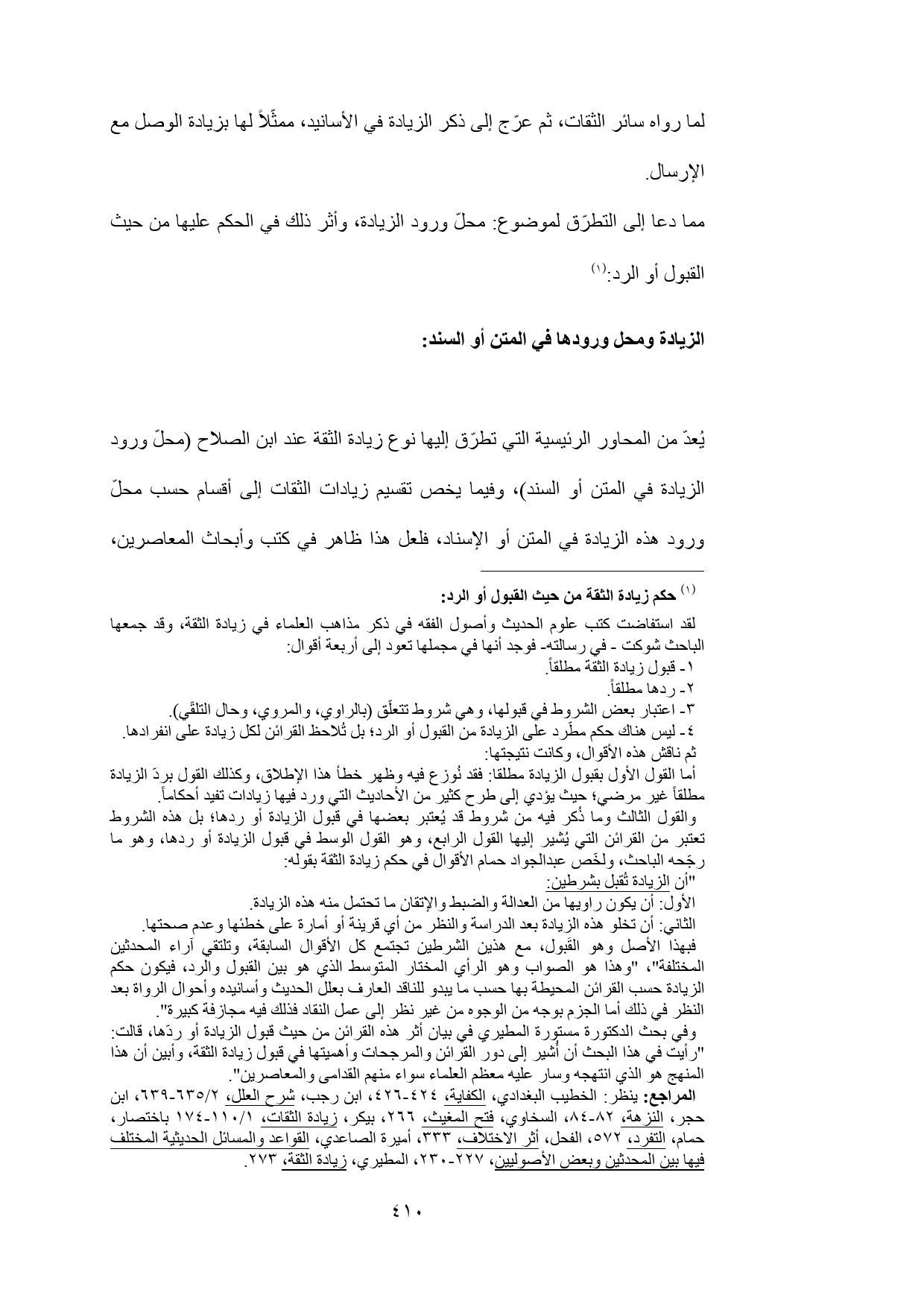 (¬1) حكم زيادة الثقة من حيث القبول أو الرد: