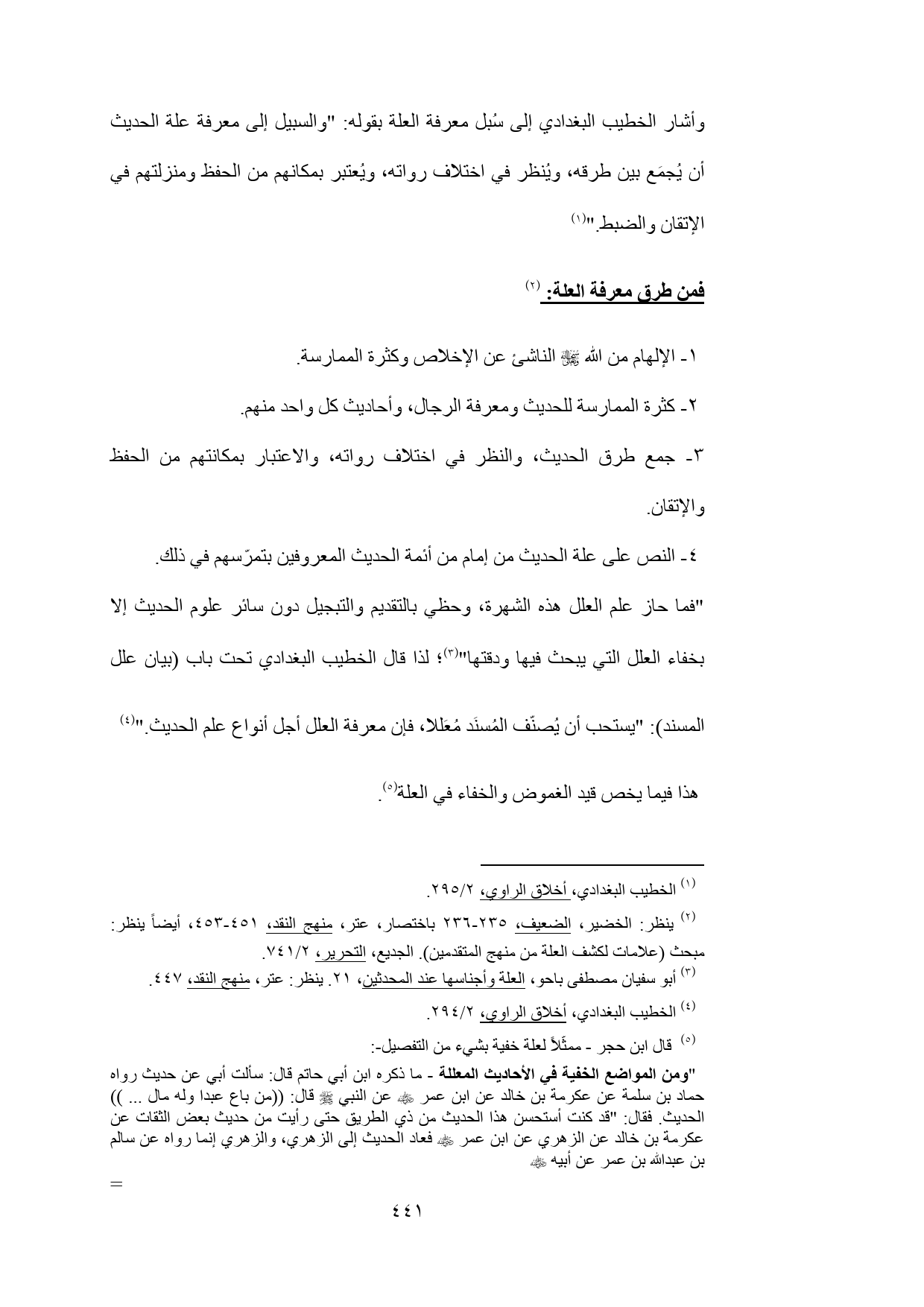 (¬3) أبو سفيان مصطفى باحو، العلة وأجناسها عند المحدثين، 21. ينظر: عتر، منهج النقد، 447.