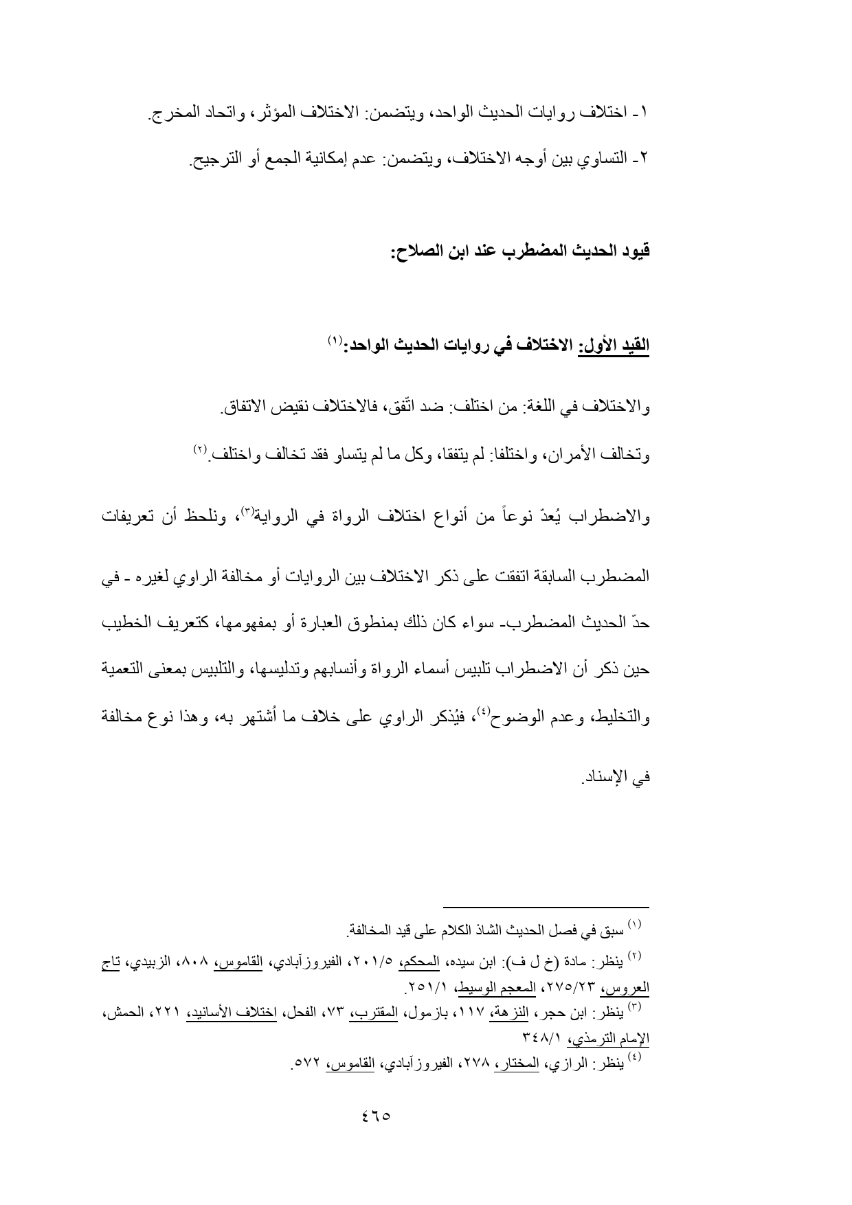 (¬1) سبق في فصل الحديث الشاذ الكلام على قيد المخالفة.