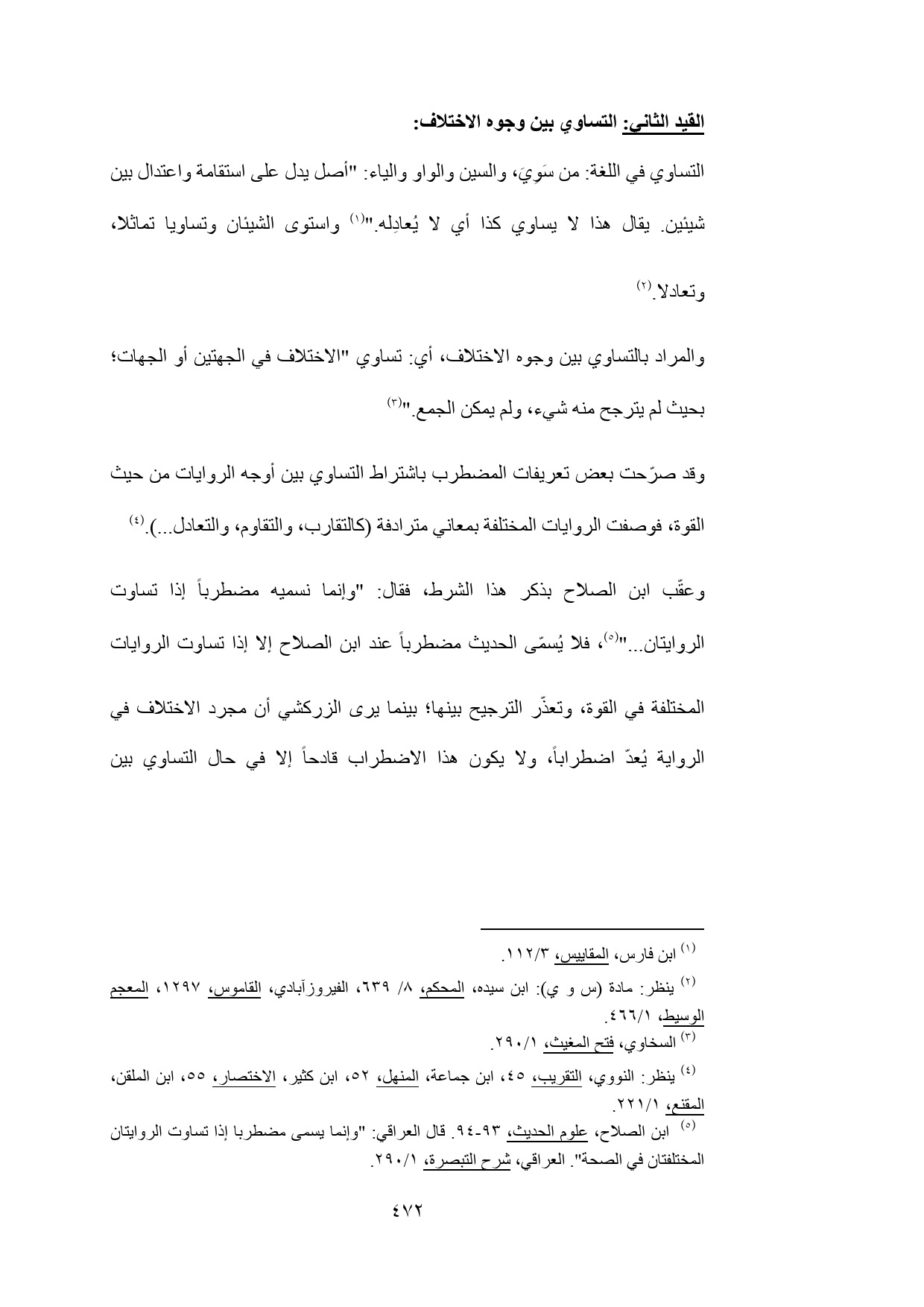 (¬5) ابن الصلاح، علوم الحديث، 93 - 94. قال العراقي: "وإنما يسمى مضطربا إذا تساوت الروايتان المختلفتان في الصحة". العراقي، شرح التبصرة، 1/ 290.