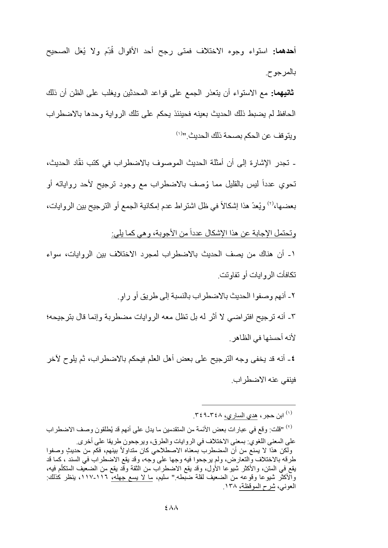 (¬2) "قلت: وقع في عبارات بعض الأئمة من المتقدمين ما يدل على أنهم قد يُطلقون وصف الاضطراب على المعنى اللغوي: بمعنى الاختلاف في الروايات والطرق، ويرجحون طريقا على أخرى.