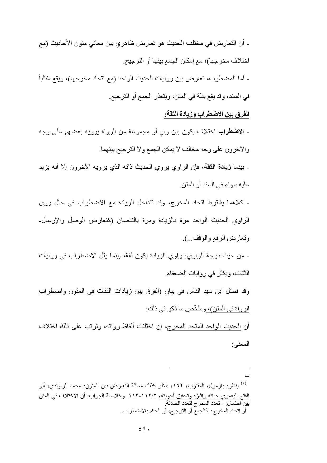 - الاضطراب اختلاف يكون بين راوٍ أو مجموعة من الرواة يرويه بعضهم على وجه والآخرون على وجه مخالف لا يمكن الجمع ولا الترجيح بينهما.