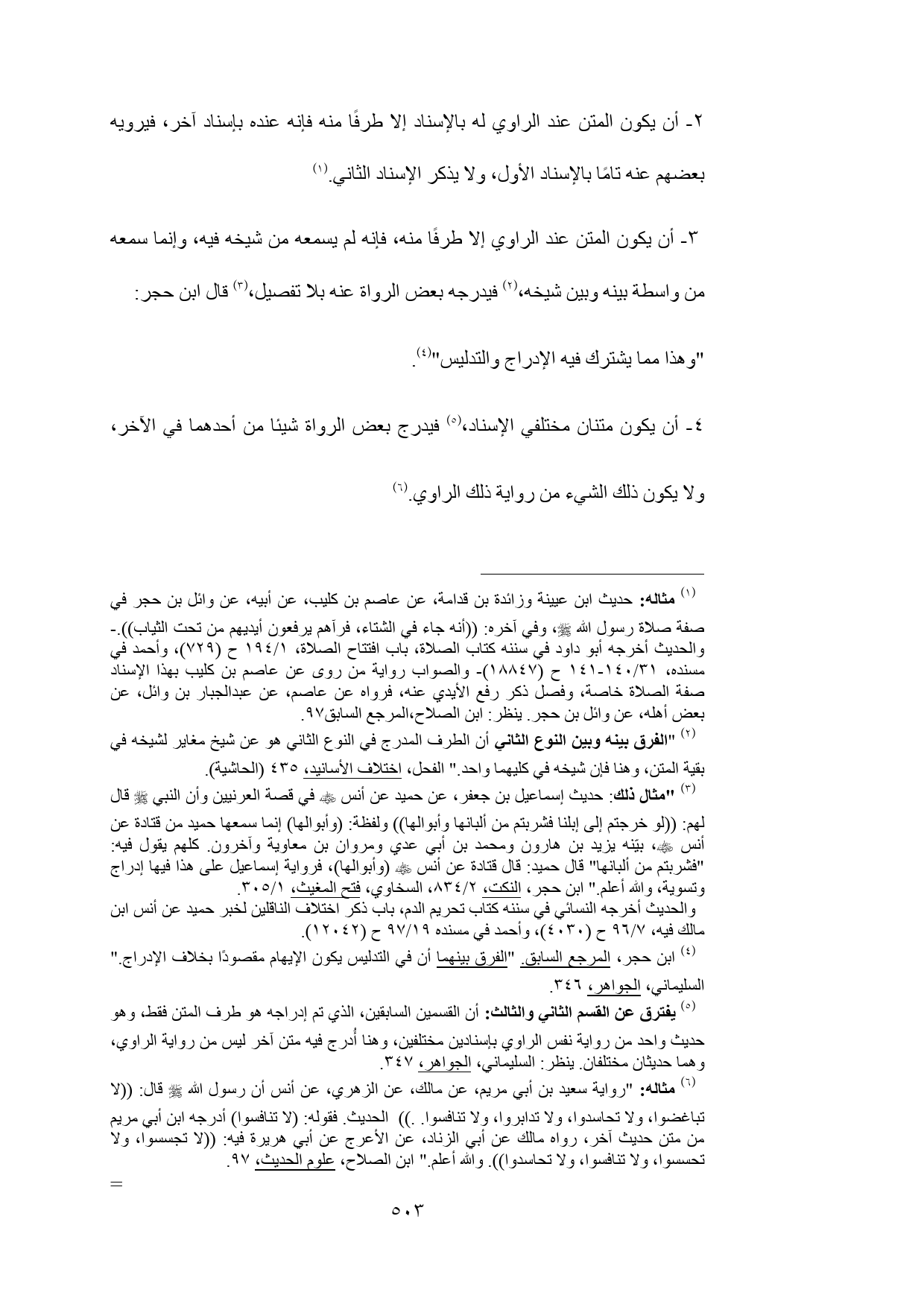 (¬4) ابن حجر، المرجع السابق. "الفرق بينهما أن في التدليس يكون الإيهام مقصودًا بخلاف الإدراج." السليماني، الجواهر، 346.