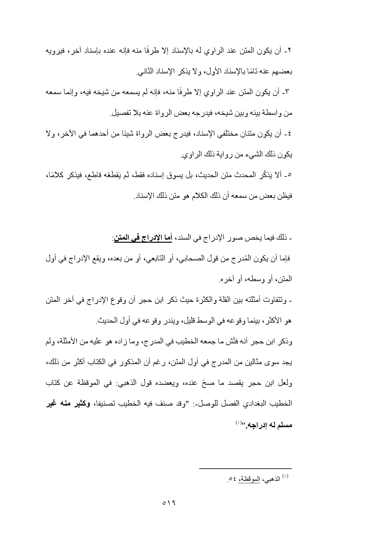 - ذلك فيما يخص صور الإدراج في السند، أما الإدراج في المتن: