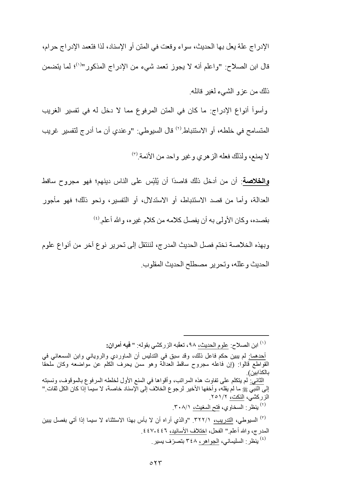 (¬3) السيوطي، التدريب، 1/ 322. "والذي أراه أن لا بأس بهذا الاستثناء لا سيما إذا أتي بفصل يبين المدرج، والله أعلم." الفحل، اختلاف الأسانيد، 446 - 447.