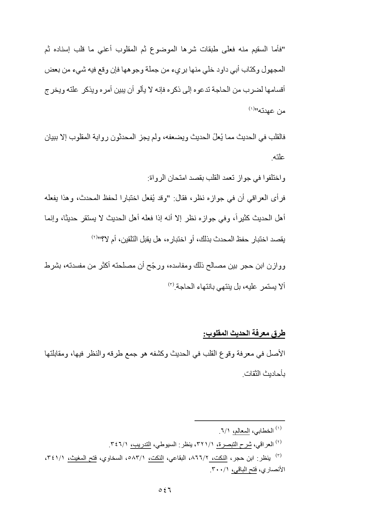 (¬3) ينظر: ابن حجر، النكت، 2/ 866، البقاعي، النكت، 1/ 583، السخاوي، فتح المغيث، 1/ 341، الأنصاري، فتح الباقي، 1/ 300.