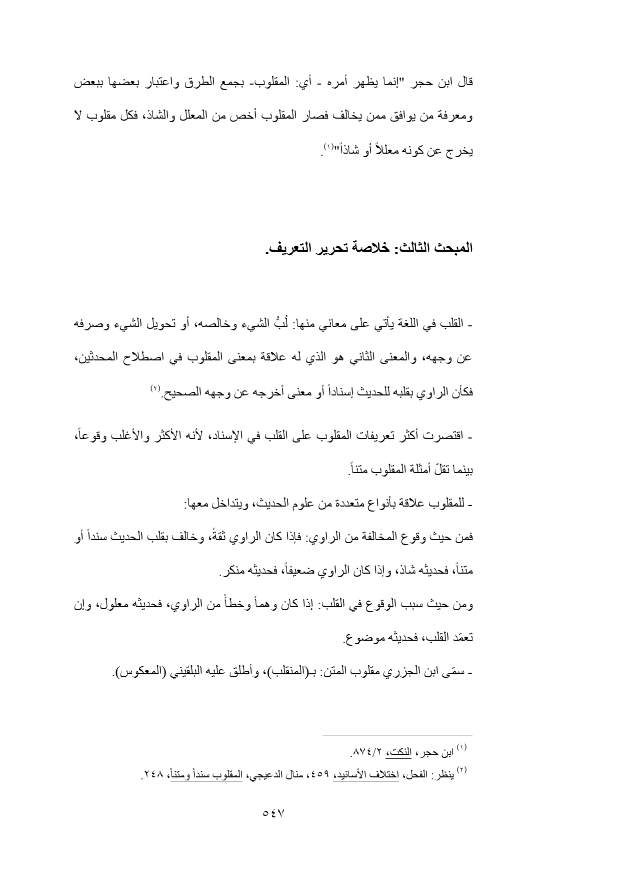 (¬2) ينظر: الفحل، اختلاف الأسانيد، 459، منال الدعيجي، المقلوب سنداً ومتناً، 248.