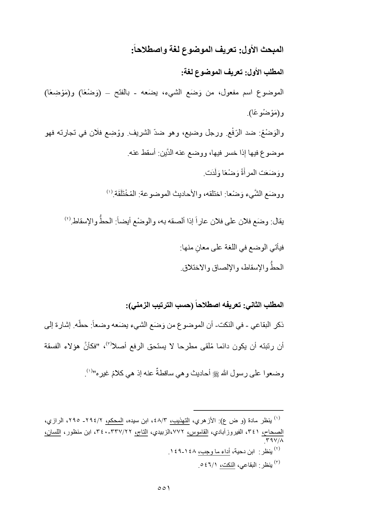 المطلب الثاني: تعريفه اصطلاحاً (حسب الترتيب الزمني):