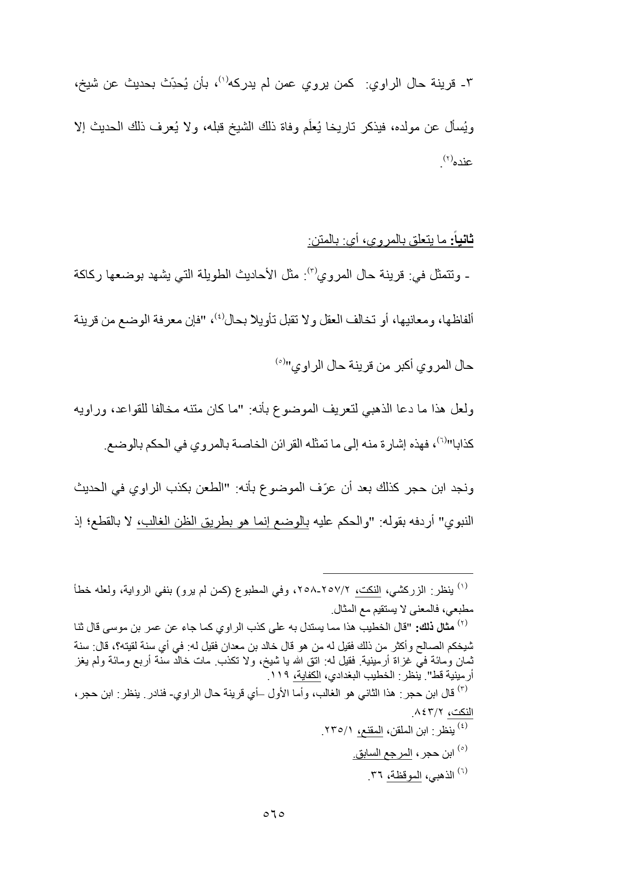 (¬3) قال ابن حجر: هذا الثاني هو الغالب، وأما الأول -أي قرينة حال الراوي- فنادر. ينظر: ابن حجر، النكت، 2/ 843.