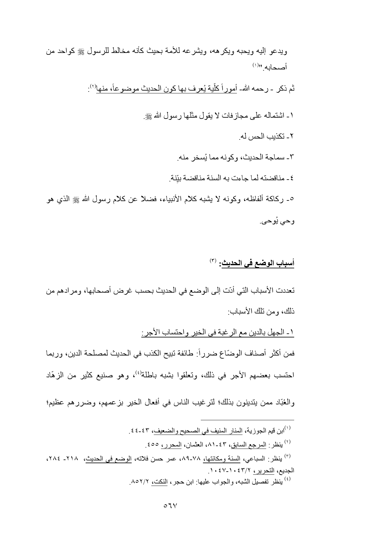 (¬3) ينظر: السباعي، السنة ومكانتها، 78 - 89، عمر حسن فلاته، الوضع في الحديث، 218 - 284، الجديع، التحرير، 2/ 1043 - 1047.