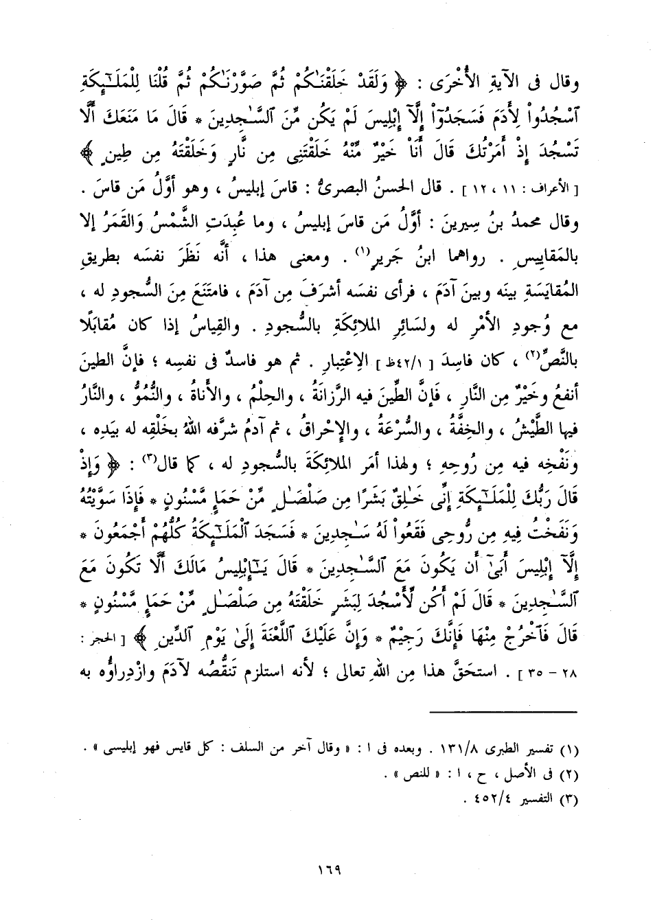 [الْحِجْرِ: 28 - 35] . اسْتَحَقَّ هَذَا مِنَ اللَّهِ تَعَالَى ; لِأَنَّهُ اسْتَلْزَمَ تَنَقُّصُهُ لِآدَمَ وَازْدِرَاؤُهُ بِهِ