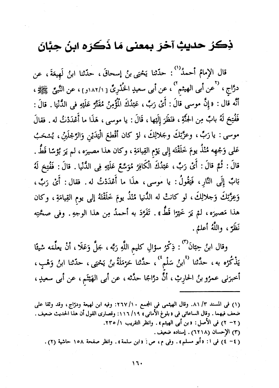 وَقَالَ ابْنُ حِبَّانَ: ذِكْرُ سُؤَالِ كَلِيمِ اللَّهِ رَبَّهُ، جَلَّ وَعَلَا، أَنْ يُعَلِّمَهُ شَيْئًا يَذْكُرُهُ بِهِ، حَدَّثَنَا ابْنُ سَلْمٍ، حَدَّثَنَا حَرْمَلَةُ بْنُ يَحْيَى، حَدَّثَنَا ابْنُ وَهْبٍ، أَخْبَرَنِي عَمْرُو بْنُ الْحَارِثِ، إِنَّ دَرَّاجًا حَدَّثَهُ، عَنْ أَبِي الْهَيْثَمِ، عَنْ أَبِي سَعِيدٍ،