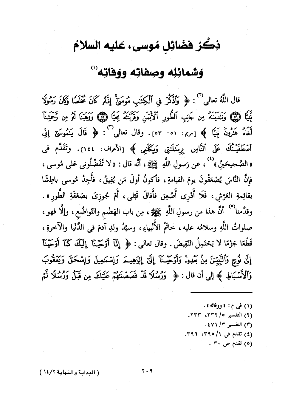 [ذِكْرُ فَضَائِلِ مُوسَى عَلَيْهِ السَّلَامُ وَشَمَائِلِهِ وَصِفَاتِهِ وَوَفَاتِهِ]