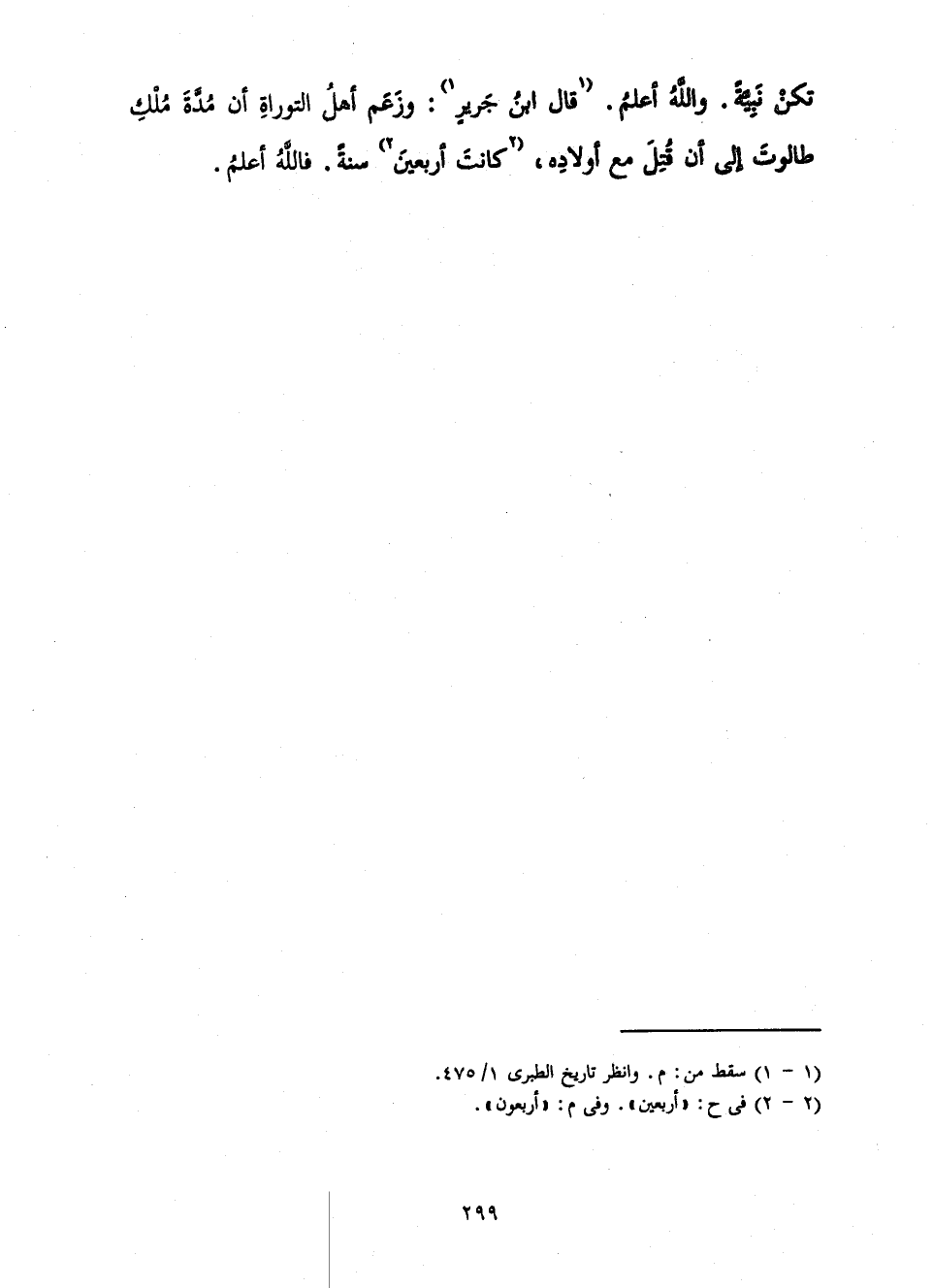 تَكُنْ نَبِيَّةً. وَاللَّهُ أَعْلَمُ. قَالَ ابْنُ جَرِيرٍ: وَزَعَمَ أَهْلُ التَّوْرَاةِ أَنَّ مُدَّةَ مُلْكِ طَالُوتَ إِلَى أَنْ قُتِلَ مَعَ أَوْلَادِهِ، كَانَتْ أَرْبَعِينَ سَنَةً. فَاللَّهُ أَعْلَمُ.