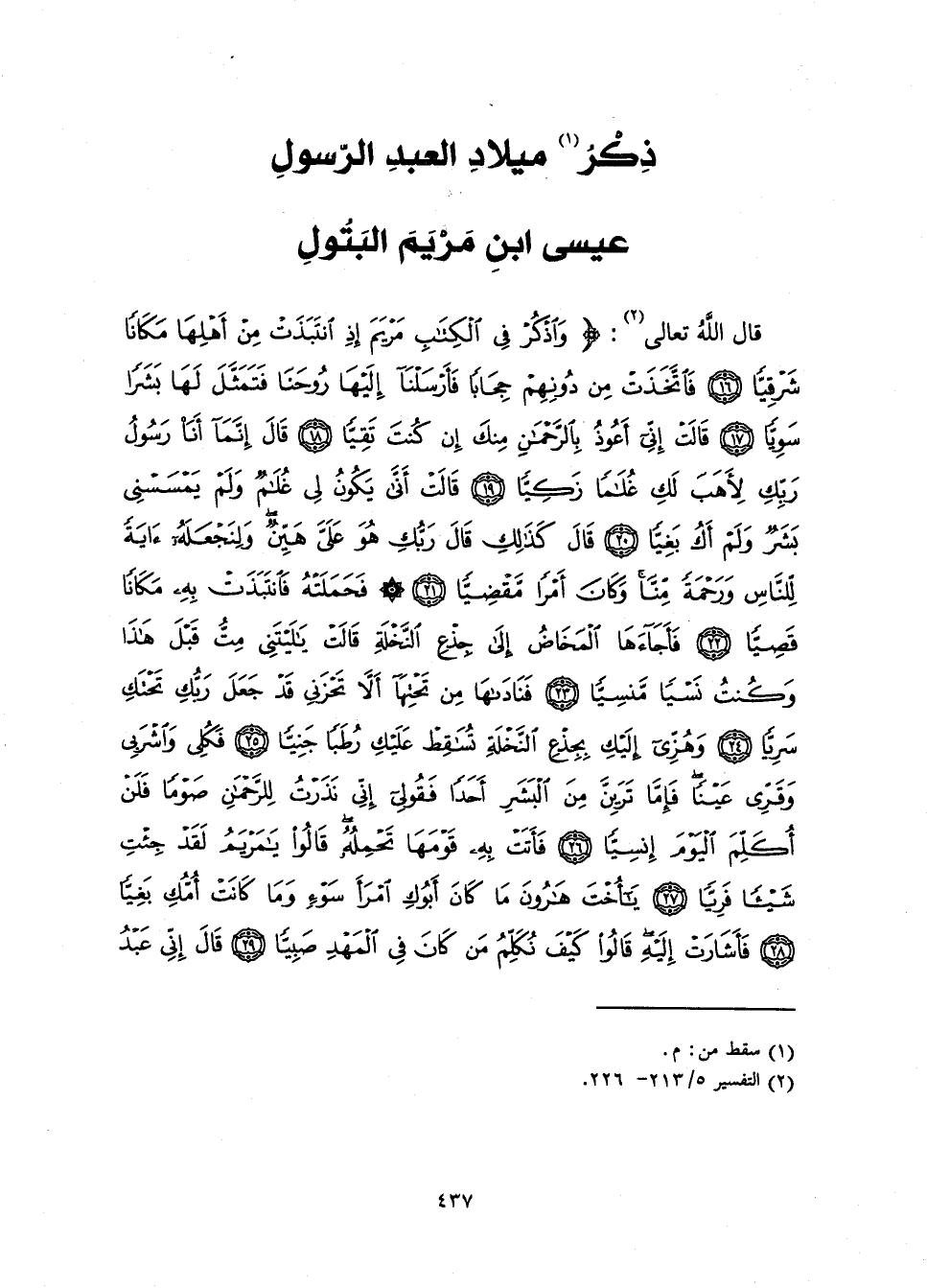 [ذِكْرُ مِيلَادِ الْعَبْدِ الرَّسُولِ عِيسَى بْنِ مَرْيَمَ الْبَتُولِ]