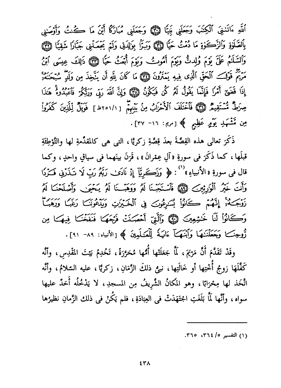 ذَكَرَ تَعَالَى هَذِهِ الْقِصَّةَ بَعْدَ قِصَّةِ زَكَرِيَّا، الَّتِي هِيَ كَالْمُقَدِّمَةِ لَهَا وَالتَّوْطِئَةِ قَبْلَهَا، كَمَا ذَكَرَ فِي سُورَةِ " آلِ عِمْرَانَ " قَرَنَ بَيْنَهُمَا فِي سِيَاقٍ وَاحِدٍ، وَكَمَا قَالَ فِي سُورَةِ " الْأَنْبِيَاءِ ": {وَزَكَرِيَّا إِذْ نَادَى رَبَّهُ رَبِّ لَا تَذَرْنِي فَرْدًا وَأَنْتَ خَيْرُ الْوَارِثِينَ فَاسْتَجَبْنَا لَهُ وَوَهَبْنَا لَهُ يَحْيَى وَأَصْلَحْنَا لَهُ زَوْجَهُ إِنَّهُمْ كَانُوا يُسَارِعُونَ فِي الْخَيْرَاتِ وَيَدْعُونَنَا رَغَبًا وَرَهَبًا وَكَانُوا لَنَا خَاشِعِينَ وَالَّتِي أَحْصَنَتْ فَرْجَهَا فَنَفَخْنَا فِيهَا مِنْ رُوحِنَا وَجَعَلْنَاهَا وَابْنَهَا آيَةً لِلْعَالَمِينَ} [الأنبياء: 89] .