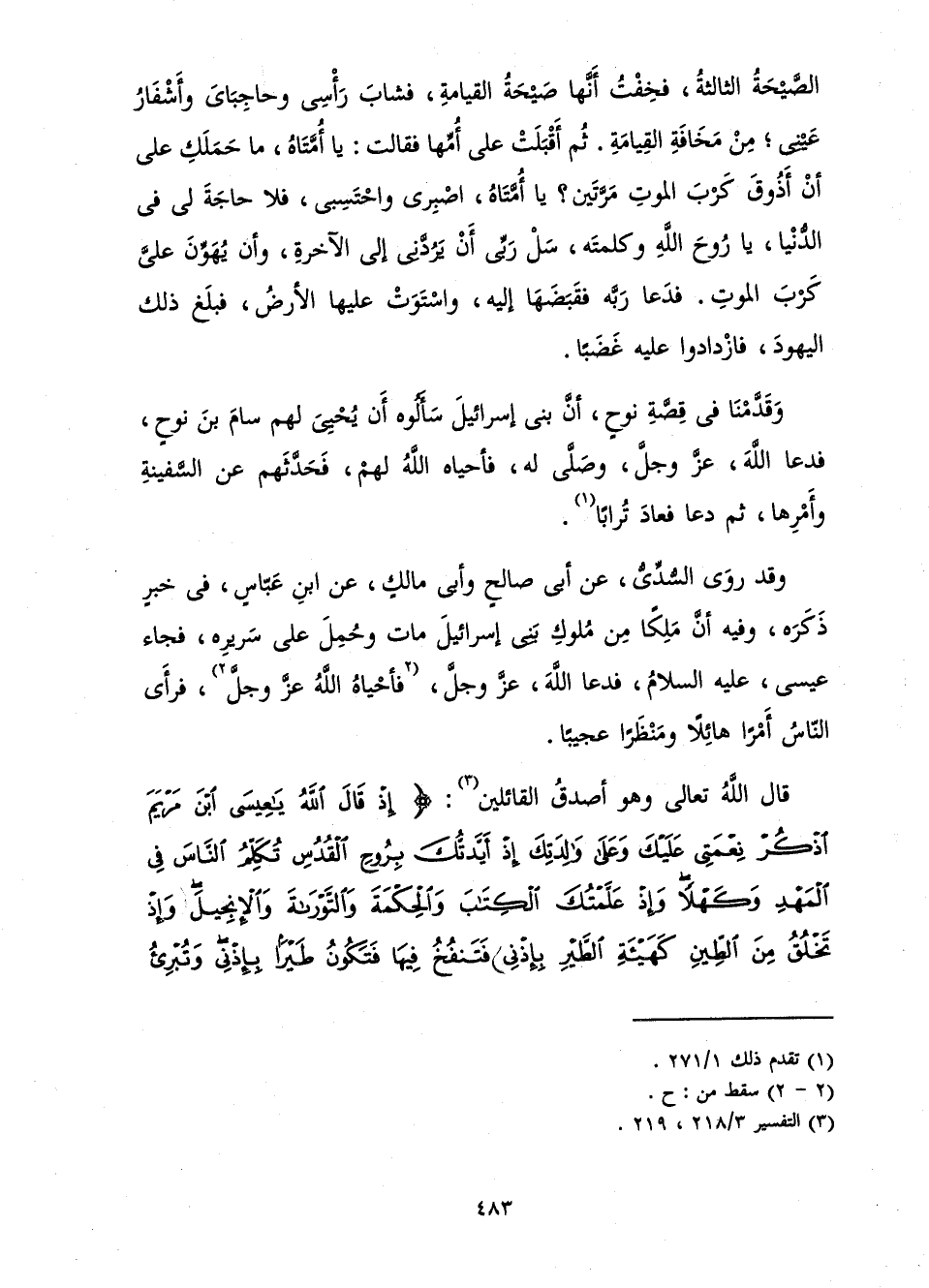 وَقَدْ رَوَى السُّدِّيُّ، عَنْ أَبِي صَالِحٍ وَأَبِي مَالِكٍ، عَنِ ابْنِ عَبَّاسٍ، فِي خَبَرٍ ذَكَرَهُ، وَفِيهِ أَنَّ مَلِكًا مِنْ مُلُوكِ بَنِي إِسْرَائِيلَ مَاتَ وَحُمِلَ عَلَى سَرِيرِهِ، فَجَاءَ عِيسَى، عَلَيْهِ السَّلَامُ، فَدَعَا اللَّهَ، عَزَّ وَجَلَّ، فَأَحْيَاهُ اللَّهُ عَزَّ وَجَلَّ، فَرَأَى النَّاسُ أَمْرًا هَائِلًا وَمَنْظَرًا عَجِيبًا.