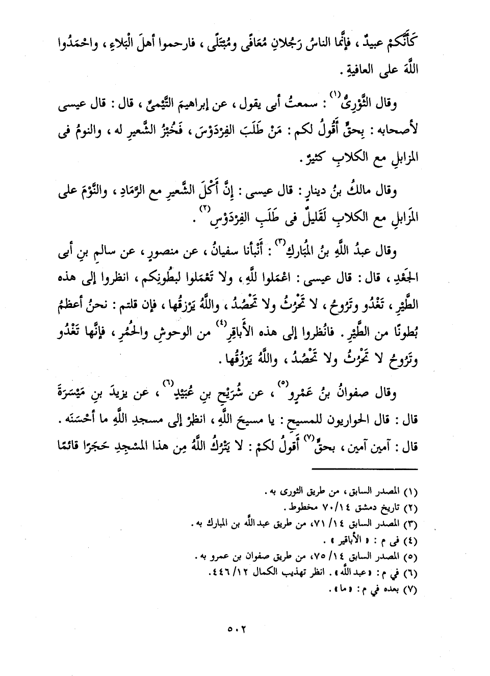 وَقَالَ عَبْدُ اللَّهِ بْنُ الْمُبَارَكِ: أَنْبَأَنَا سُفْيَانُ، عَنْ مَنْصُورٍ، عَنْ سَالِمِ بْنِ أَبِي الْجَعْدِ، قَالَ: قَالَ عِيسَى: اعْمَلُوا لِلَّهِ وَلَا تَعْمَلُوا لِبُطُونِكُمُ، انْظُرُوا إِلَى هَذِهِ الطَّيْرِ تَغْدُو وَتَرُوحُ، لَا تَحْرُثُ وَلَا تَحْصُدُ، وَاللَّهُ يَرْزُقُهَا، فَإِنْ قُلْتُمْ: نَحْنُ أَعْظَمُ بُطُونًا مِنَ الطَّيْرِ. فَانْظُرُوا إِلَى هَذِهِ الْأَبَاقِرِ مِنَ الْوُحُوشِ وَالْحُمُرِ، فَإِنَّهَا تَغْدُو وَتَرُوحُ لَا تَحْرُثُ وَلَا تَحْصُدُ، وَاللَّهُ يَرْزُقُهَا.