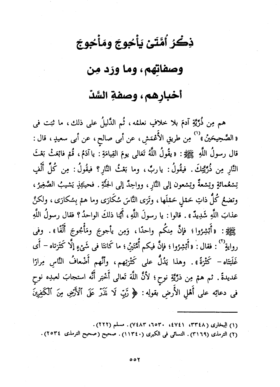 [ذِكْرُ أُمَّتَيْ يَأْجُوجَ وَمَأْجُوجَ وَصِفَاتِهِمْ وَمَا وَرَدَ مِنْ أَخْبَارِهِمْ وَصِفَةِ السَّدِّ]